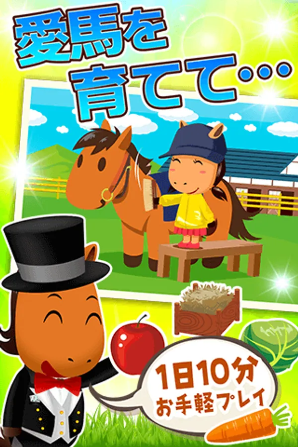 Grow your horse in easy play 10 minutes a day and compete in the race! You can enjoy the dream owner's life.