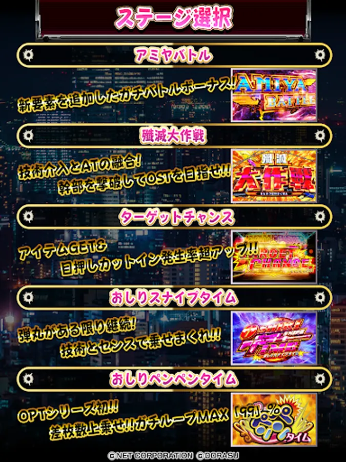 ● Each winning probability and other specifications for each setting are almost the same as the actual pachislot machine, but it may differ from the actual pachislot machine operation.