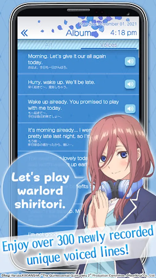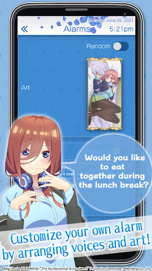 Enjoy arranging the different voiced lines and art to customize your own unique alarms!