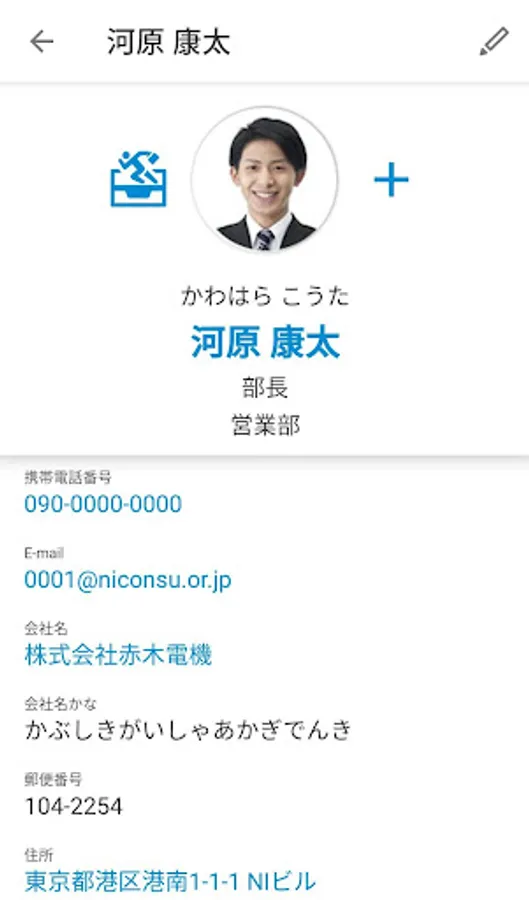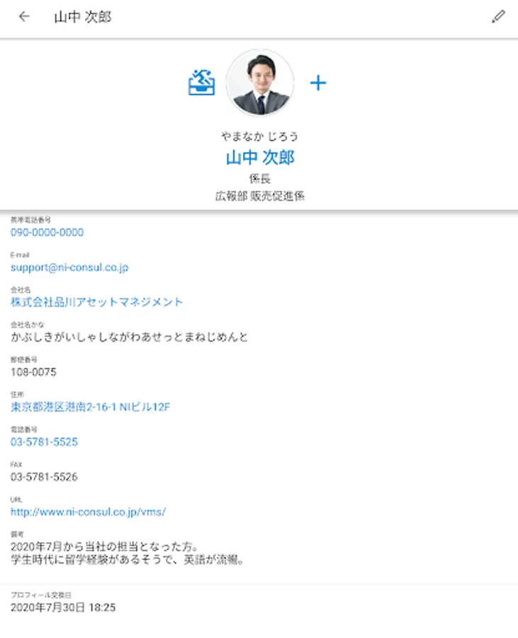 Name, phone number, e-mail address, affiliation information, etc. that were previously done on paper business cards in business settings