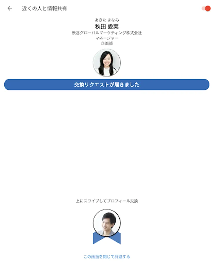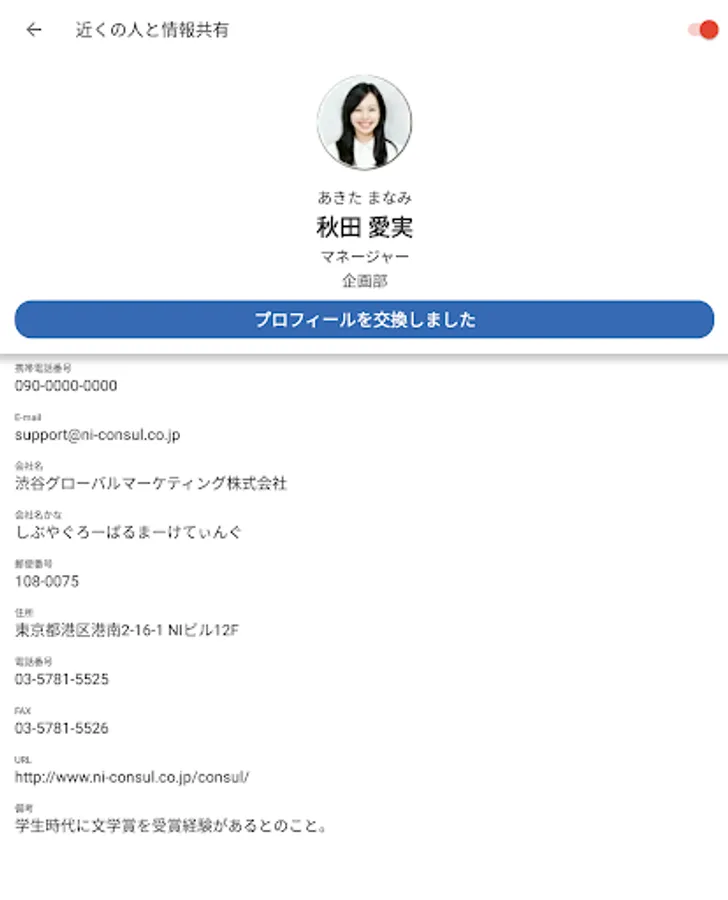 It is an application for smart devices that realizes the exchange of contact information (collectively referred to as "profile information") by digital means.