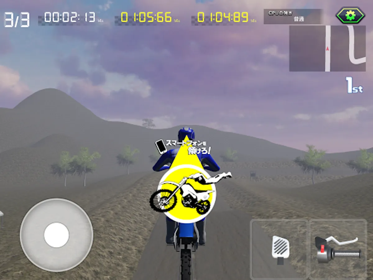By shaking the terminal at the timing of the jump, the "jump action" will succeed and the bike will accelerate.