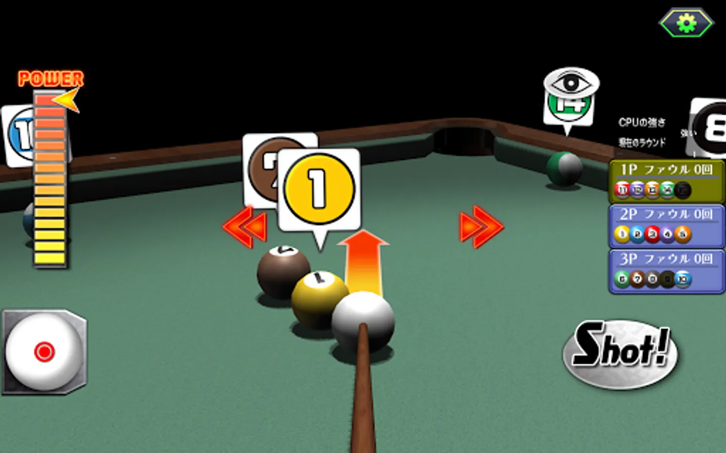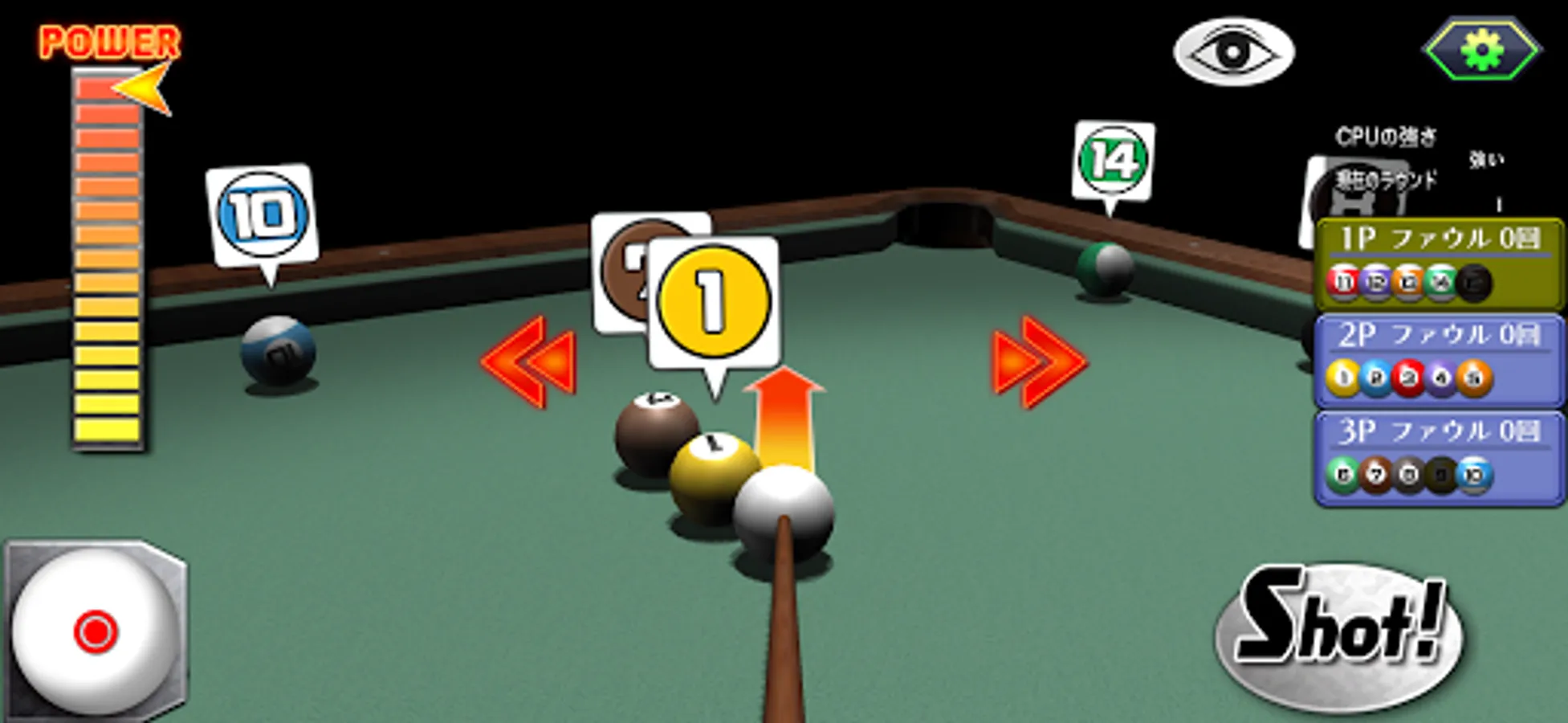 An authentic 3D billiard that allows you to take advantage of the twist by changing the striking strength and striking point.
