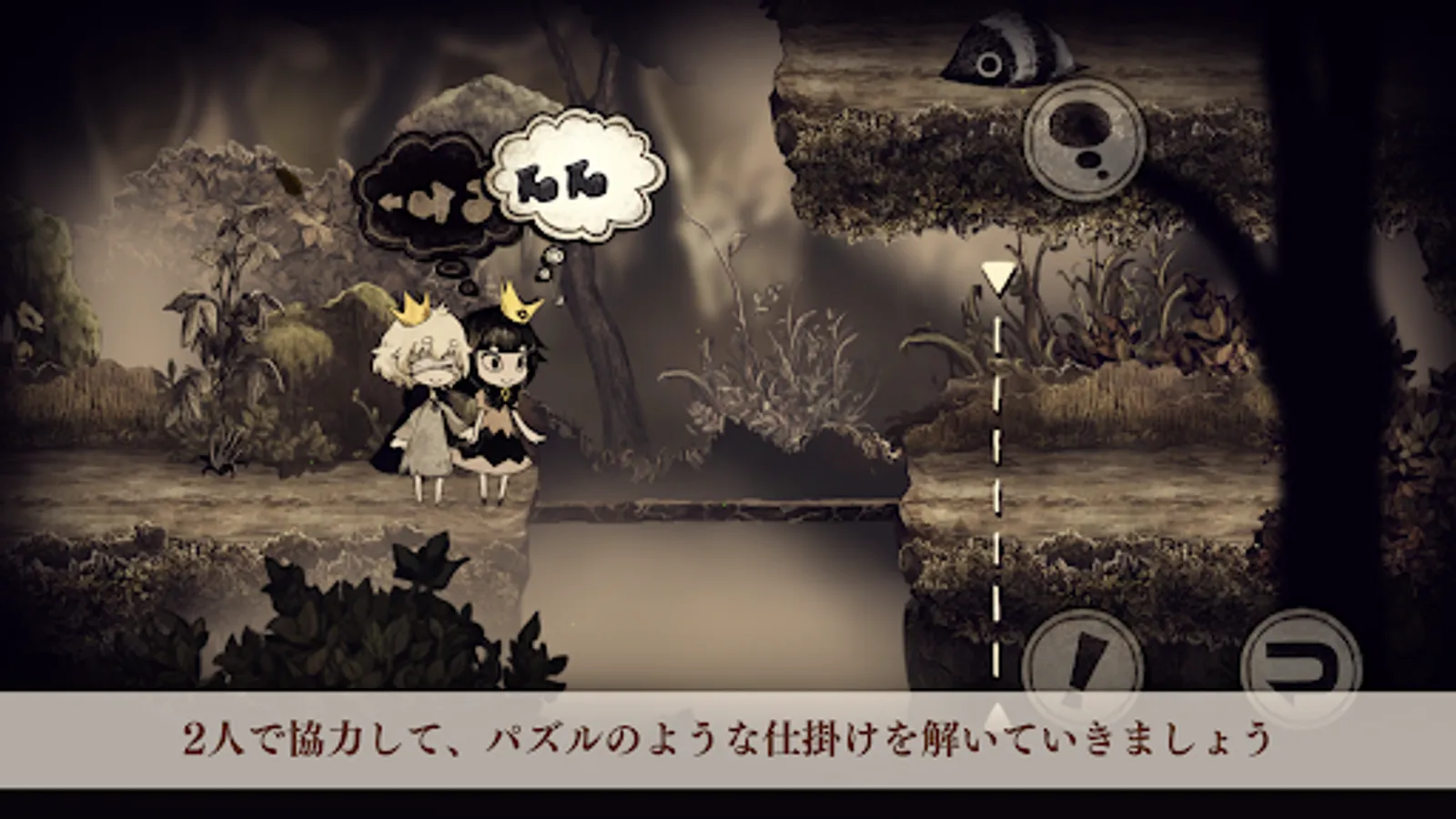A 2D side-scrolling action-adventure depicting the interaction between a monster and a human prince.