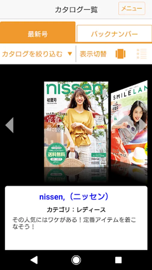Ladies, large size, children's clothing, men's, furniture, until the goods! The Nissen of the catalog is easy to watch the app in the smartphone.