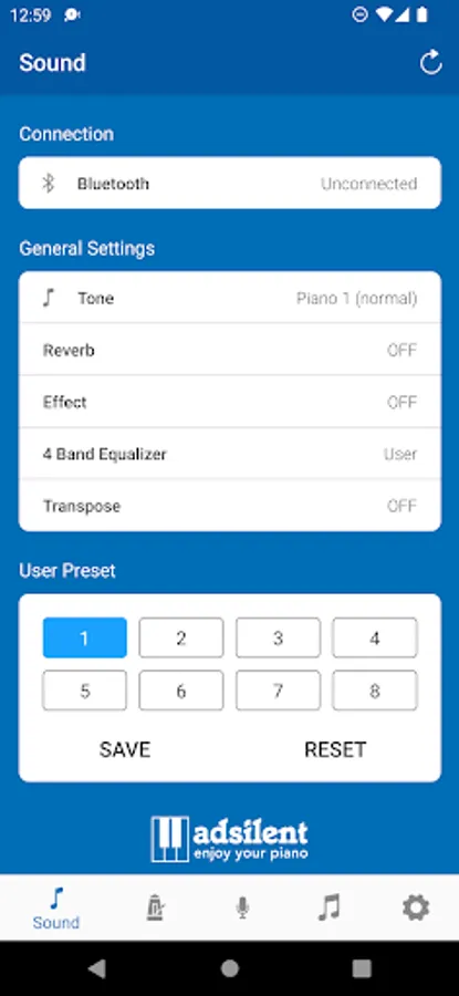 adsilent is a companion app for the adsilent silent system for upright and grand pianos by Excellent Piano Installs A. Duetz.