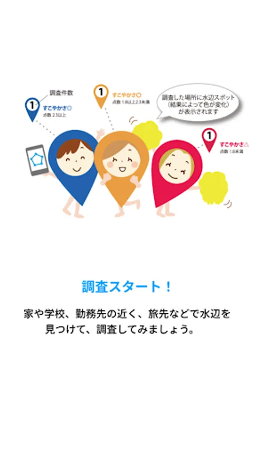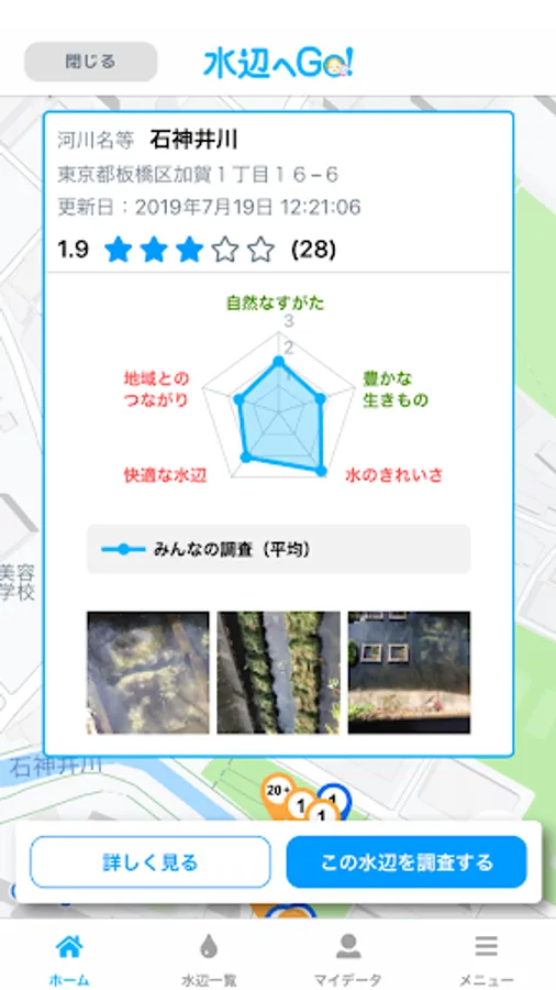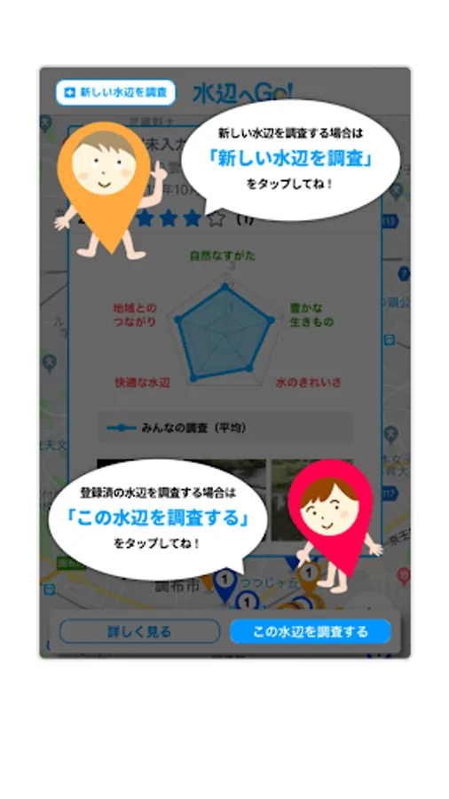 First in Japan! / It is an application that collects data only for watersides (rivers, lakes, ponds). Find out what watersides you like, upload photos, and increase your favorites.