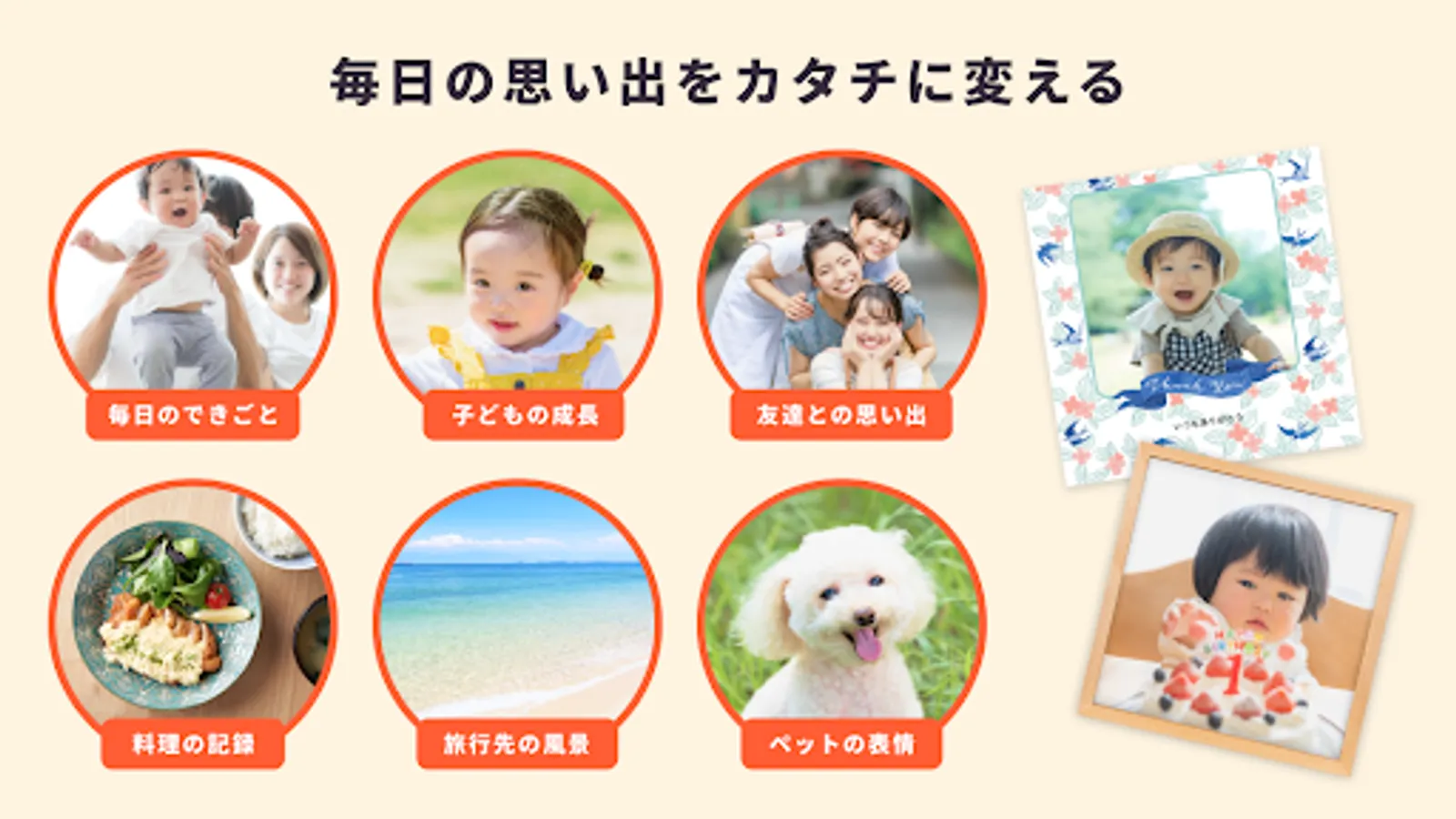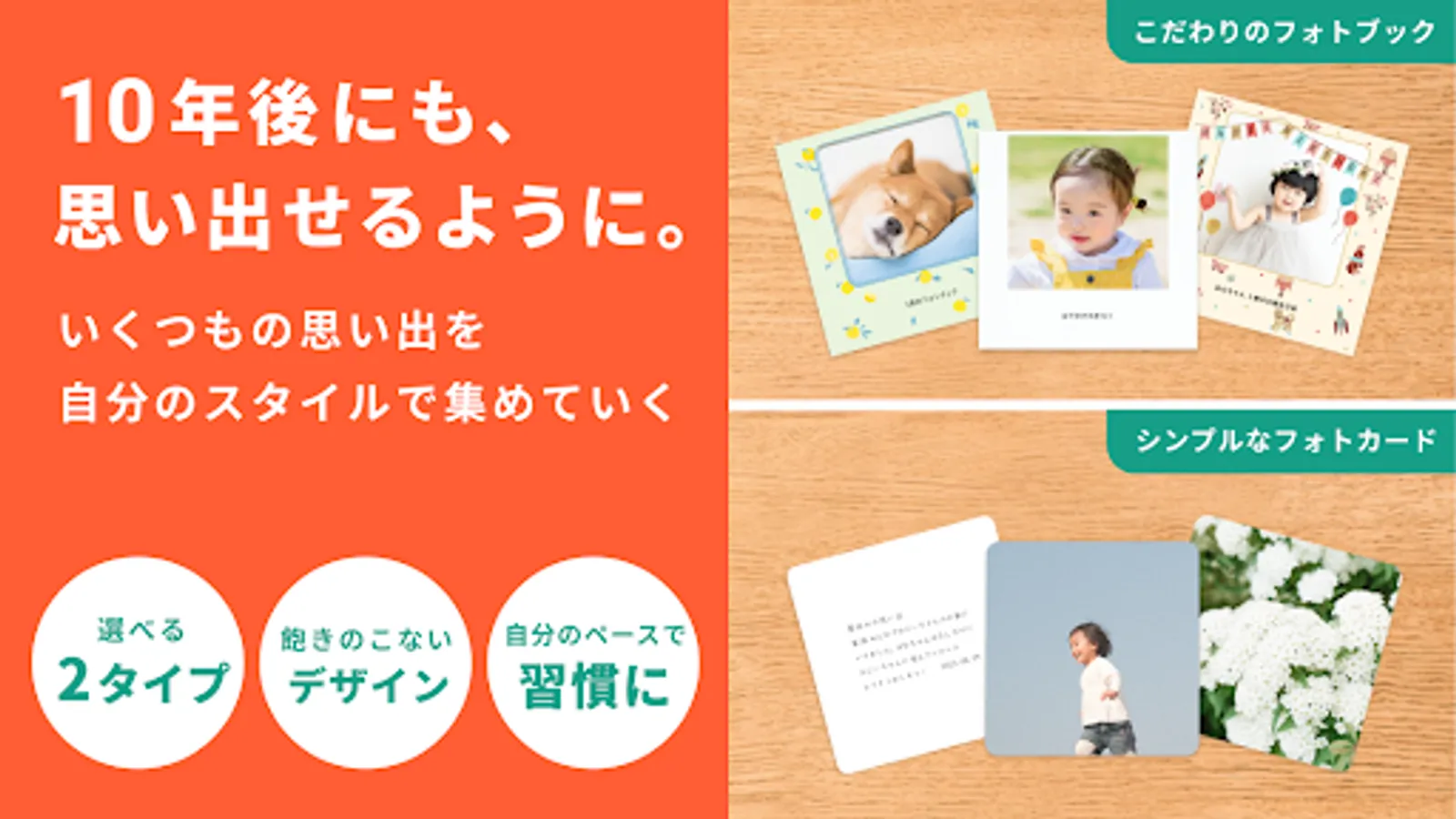 ①Special "photobooks" and simple "photocards". You can record your memories in two styles.