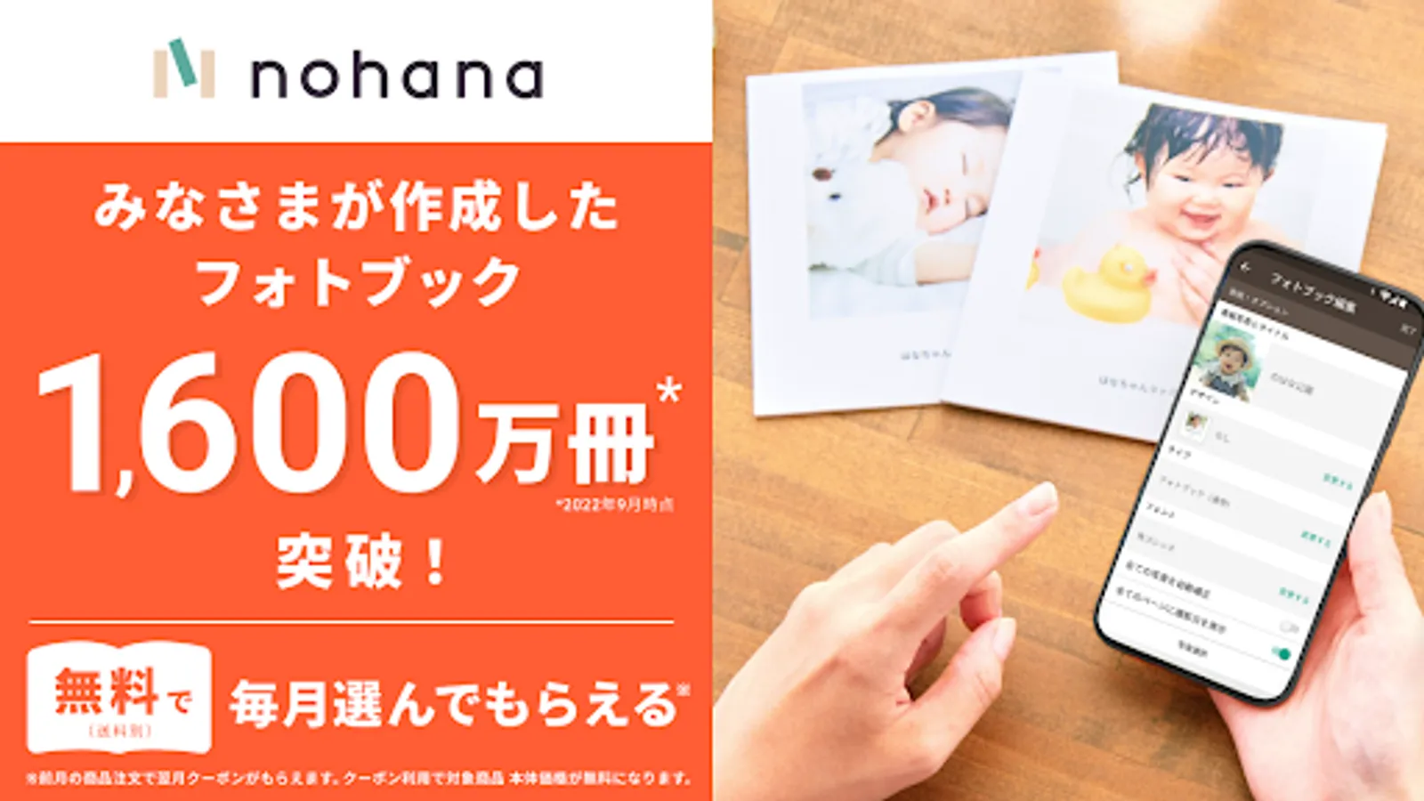 Photo Book [Total orders exceed 16 million copies] Nohana is an app that allows you to create and print photo books and photo albums (as of October 2022)