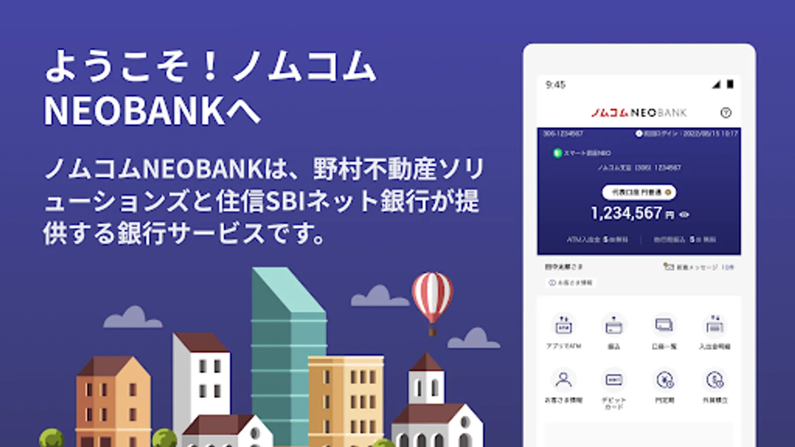 Nomcom NEOBANK is a banking and financial service provided by SBI Sumishin Net Bank and Nomura Real Estate Solutions.