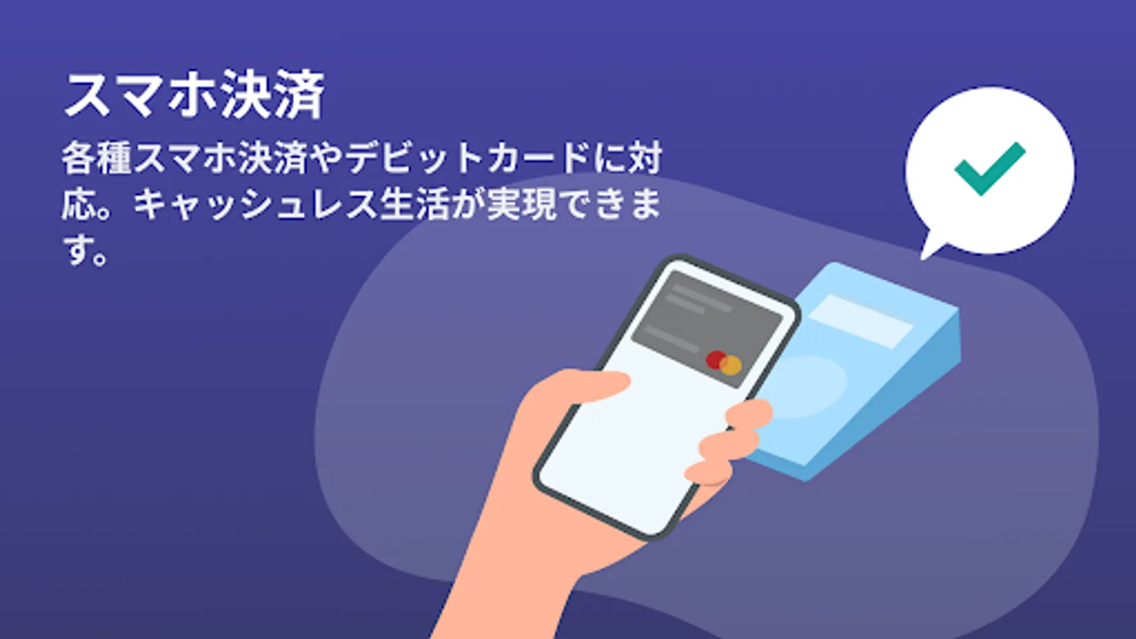 ・With "Smartphone Debit (Mastercard)", online shopping can be used with the debit card number issued by the app.
