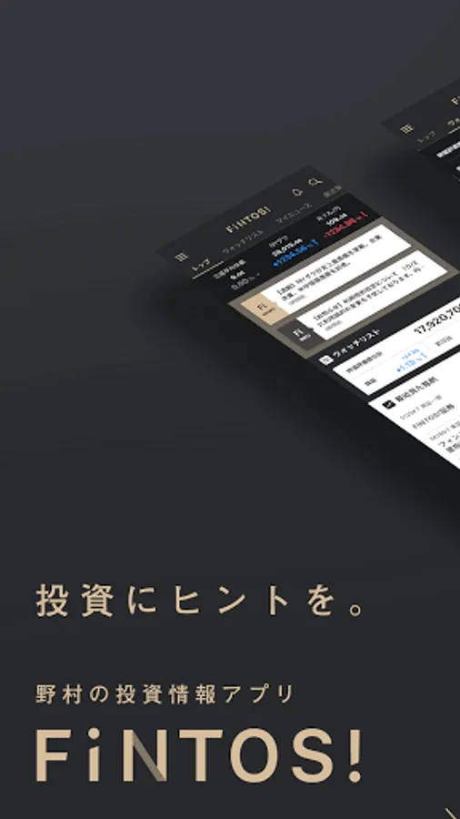 FINTOS! is an investment information app for individual investors operated by Nomura Securities based on the concept of "Hints for investment." You can use it even if you do not have an account with Nomura Securities. Basic functions are available for free.
