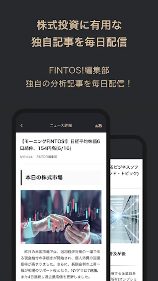 1. One-stop delivery of news from a variety of media, including original articles from the FINTOS! editorial department, that will serve as a reference for stock investment.