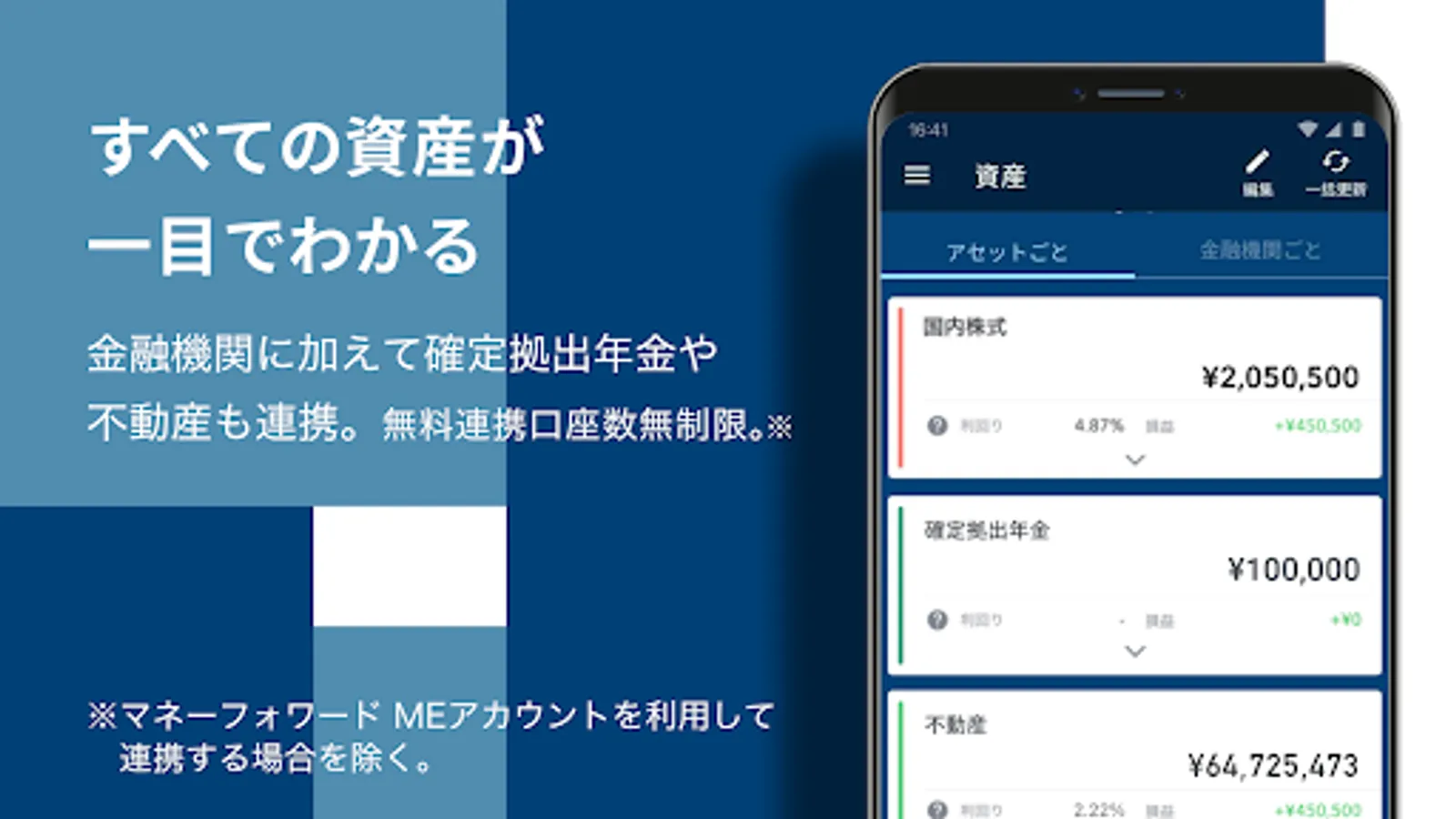 In other words, it means "individual" (each asset dispersed in multiple financial institutions), and at the same time, it also refers to an aggregate that brings them together. We have developed an asset management tool that allows you to see all your assets at a glance.