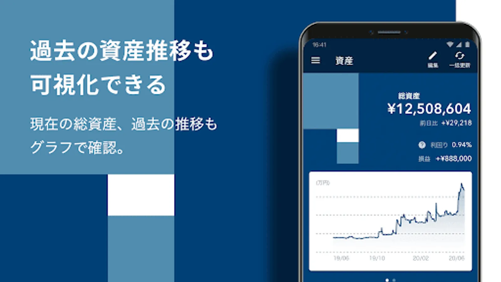 With the account aggregation function, it is possible to centrally manage the assets held by multiple financial institutions by automatic renewal and grasp the overall picture and balance of your assets.
