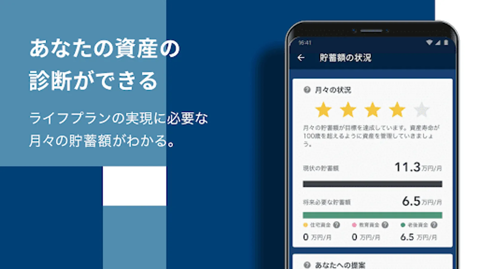 In addition, the monthly savings required to realize the life plan is decomposed into the deposit amount and the reserve investment amount, and the allocation ratio is presented.