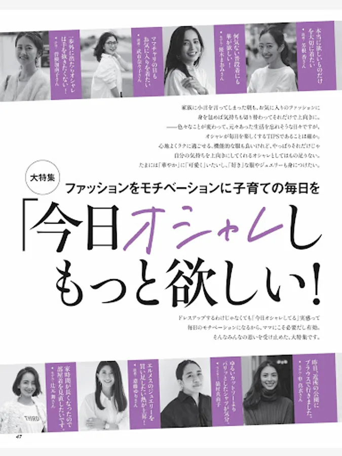 "Women with a foundation, strong, gentle, beautiful" as a mother, as a wife, fashion lifestyle magazine !! which is supported by the 30's Mrs. shine as a woman