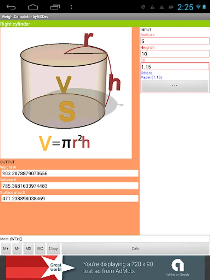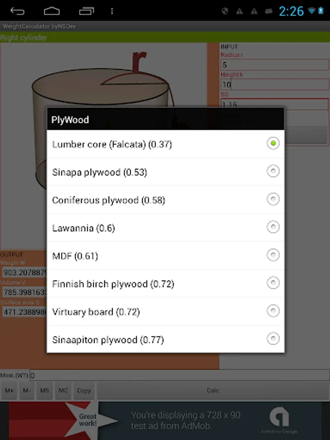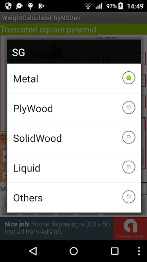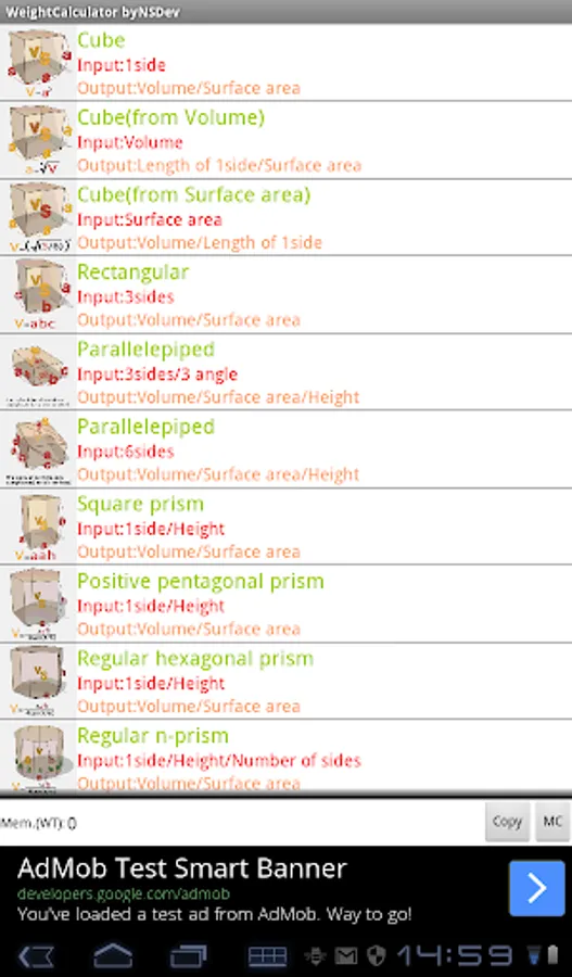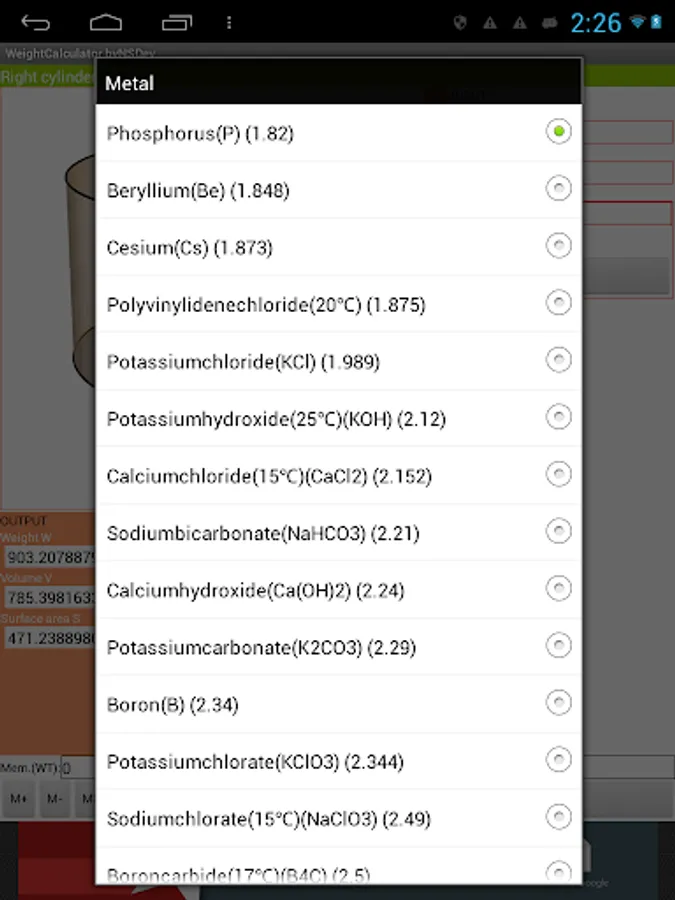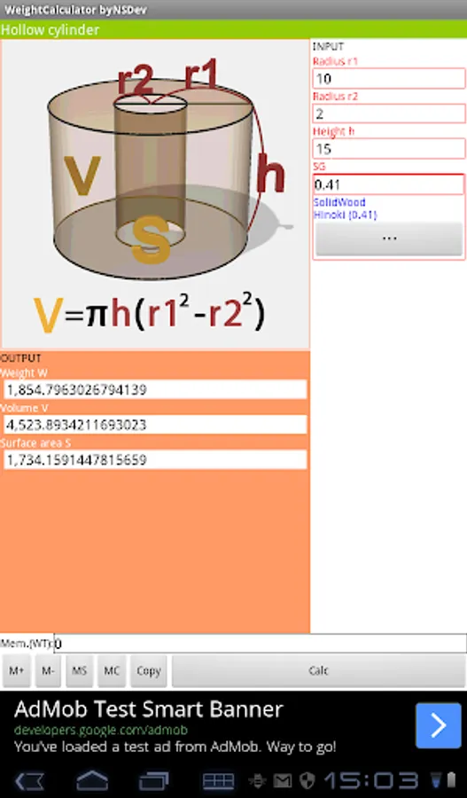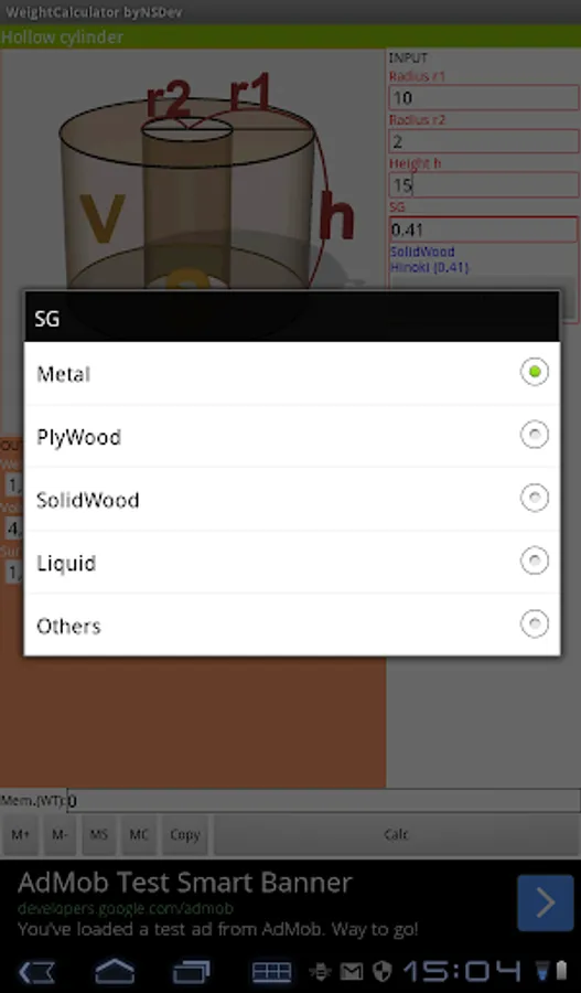 Application to calculate the wight by 52 kinds of Shape and 243 kinds of specific gravity.