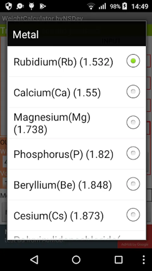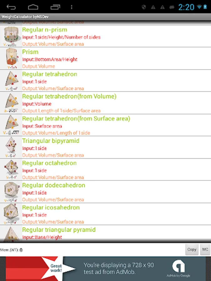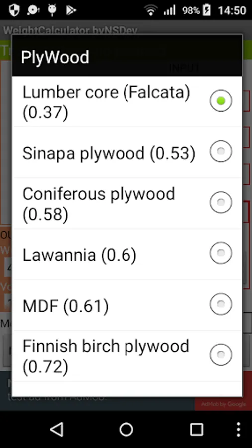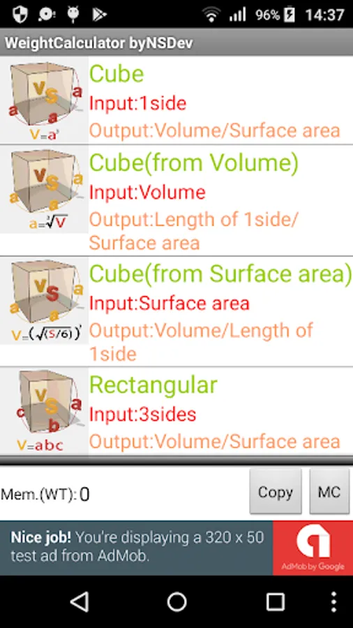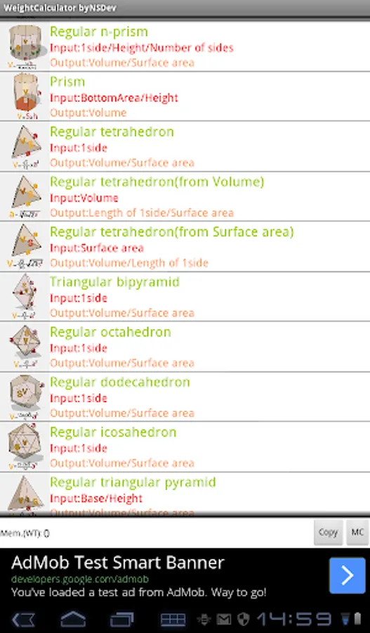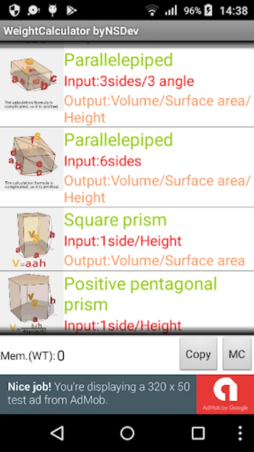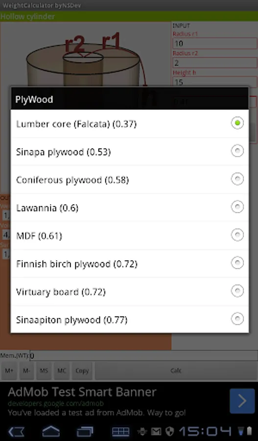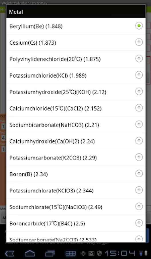 Application to calculate the wight by 52 kinds of Shape and 243 kinds of specific gravity.