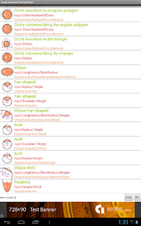 We will calculate the length of the area and some from the sides and angle triangle, square, regular polygons, circles, ellipses, pies, pies ellipse, arc, elliptical arc, or parabola.