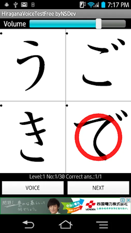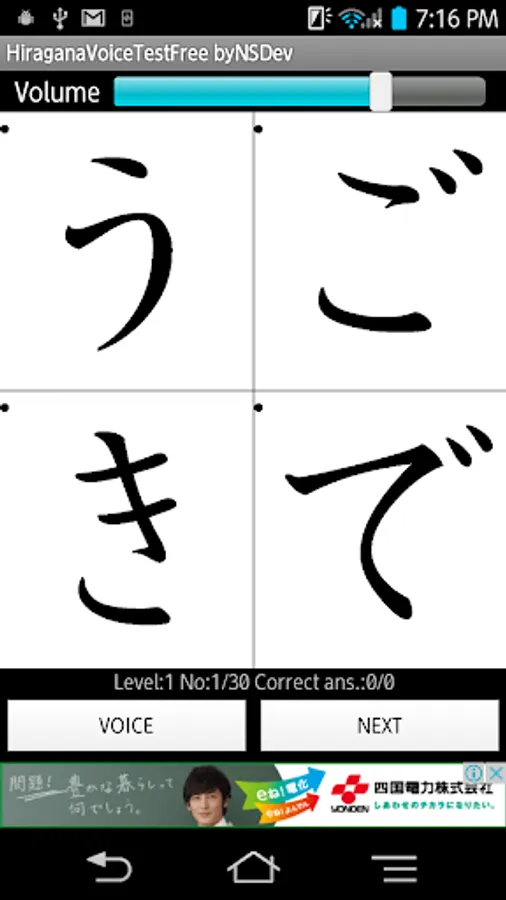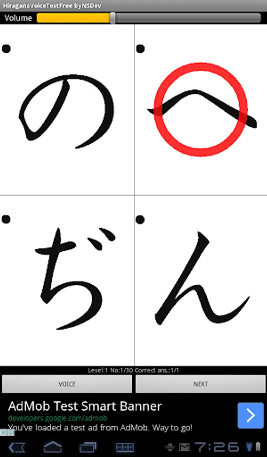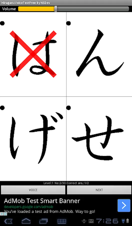 Please tap the same Hiragana character as the voice.
