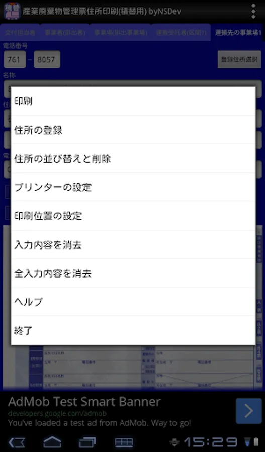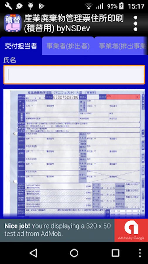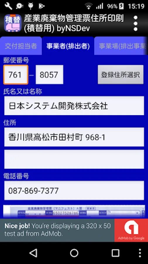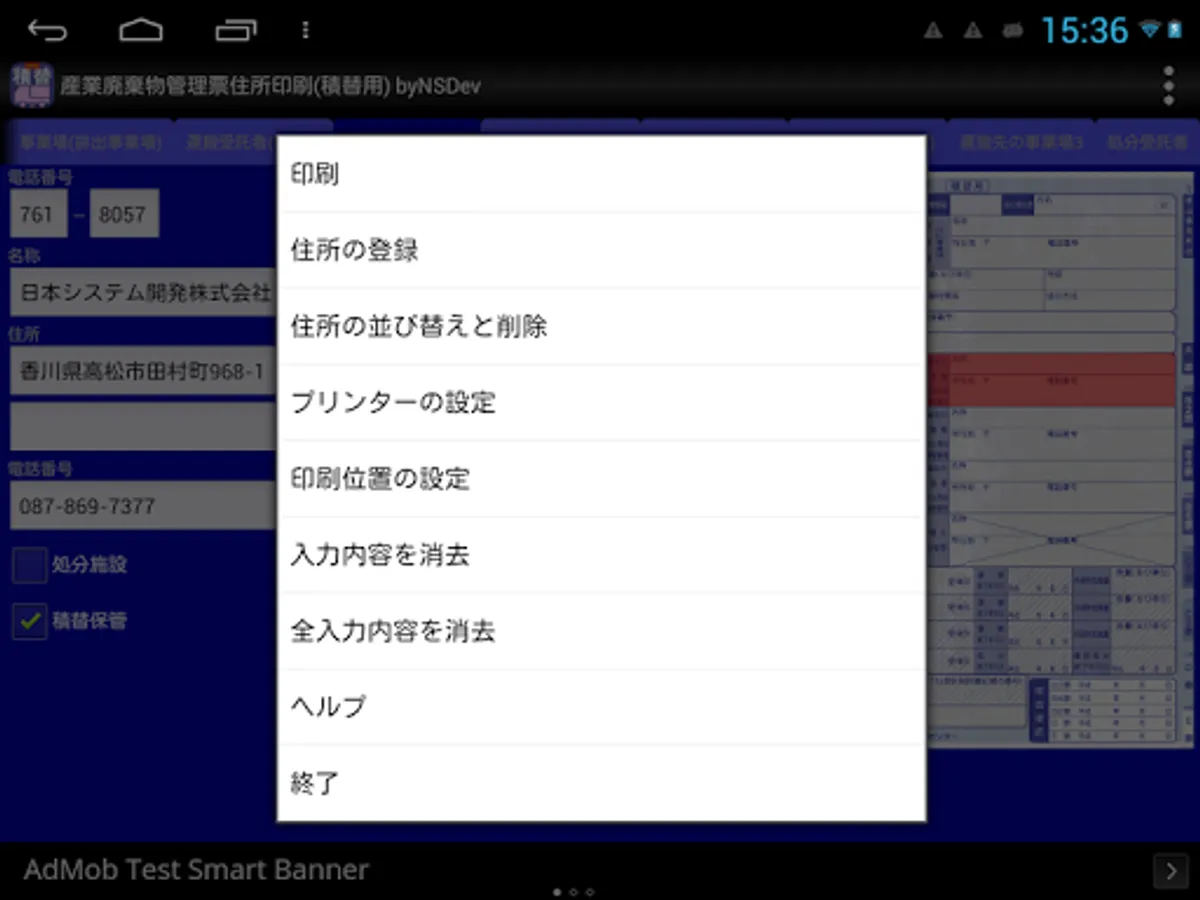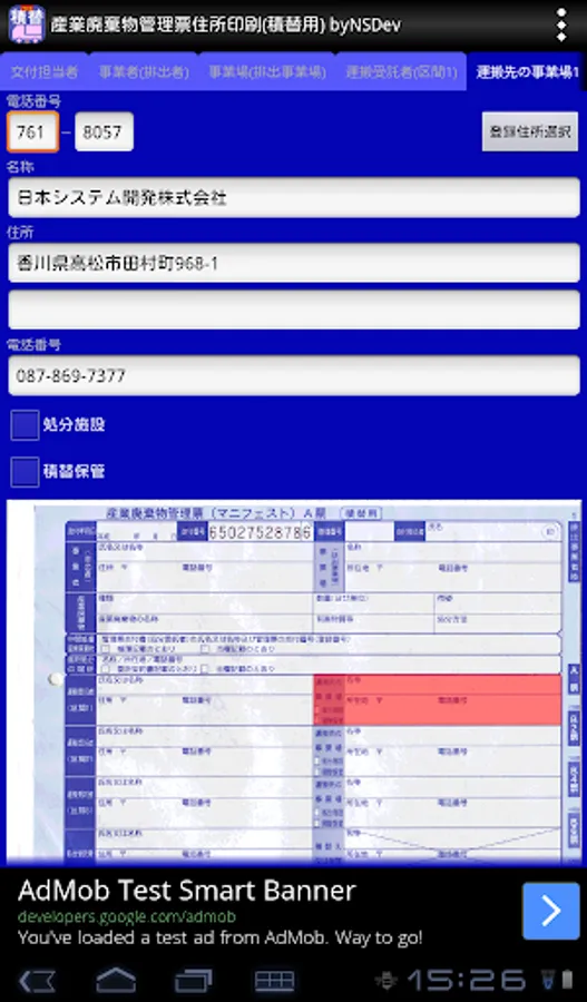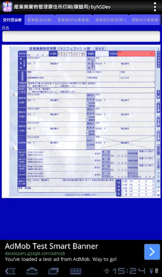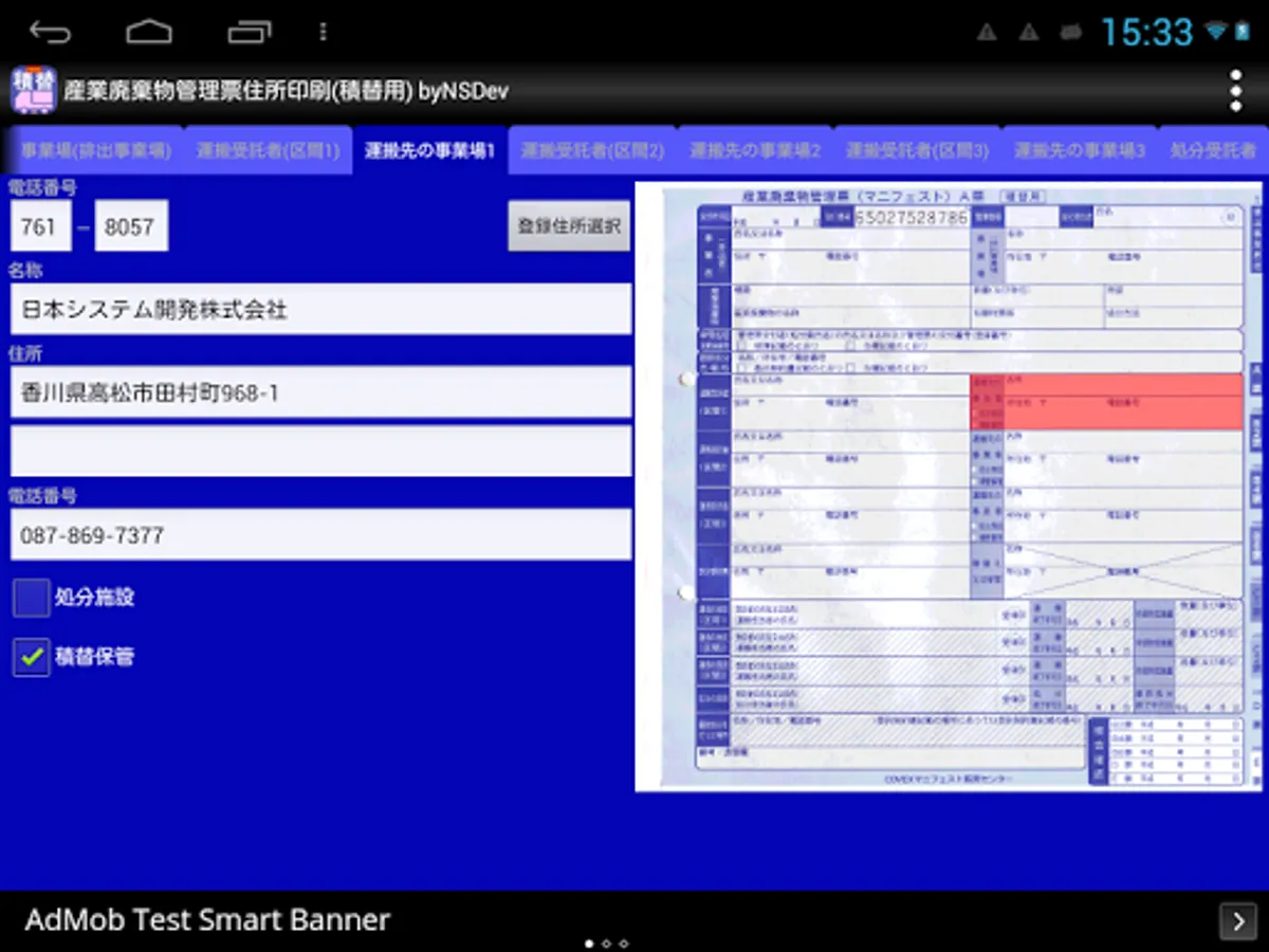 Industrial waste management slip (manifest slip) It is an application that prints the address for transshipment.
