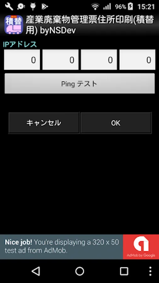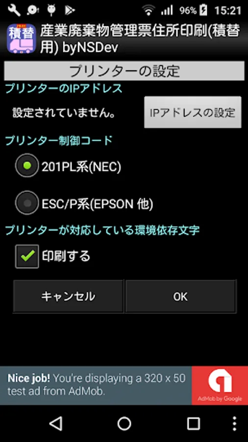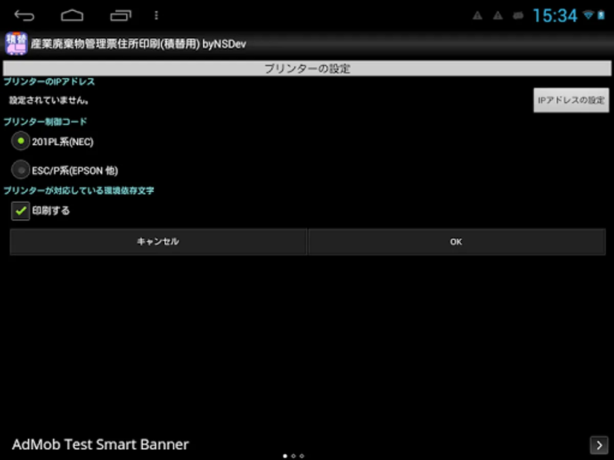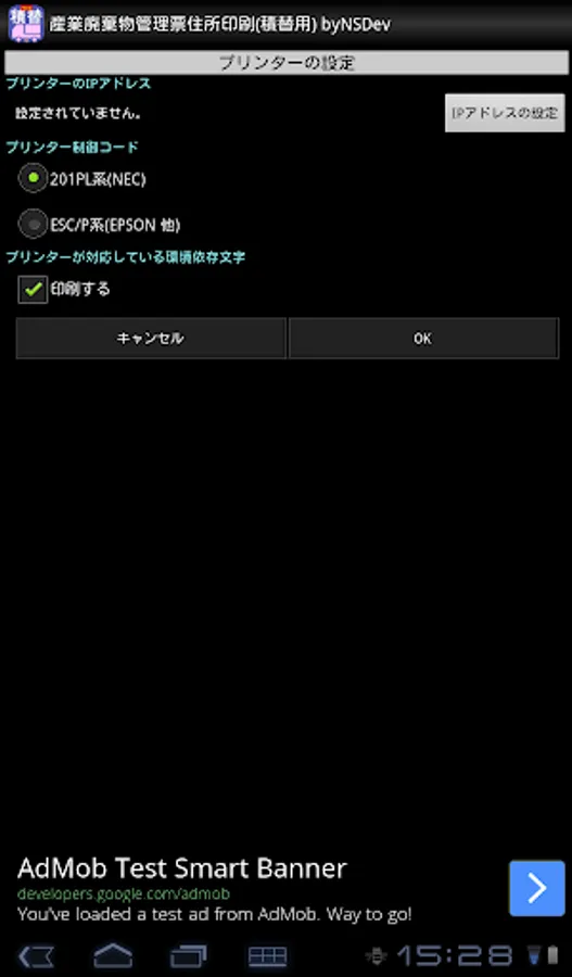 Set the printer's TCP / IP for this app. (Check the connection with Ping.)