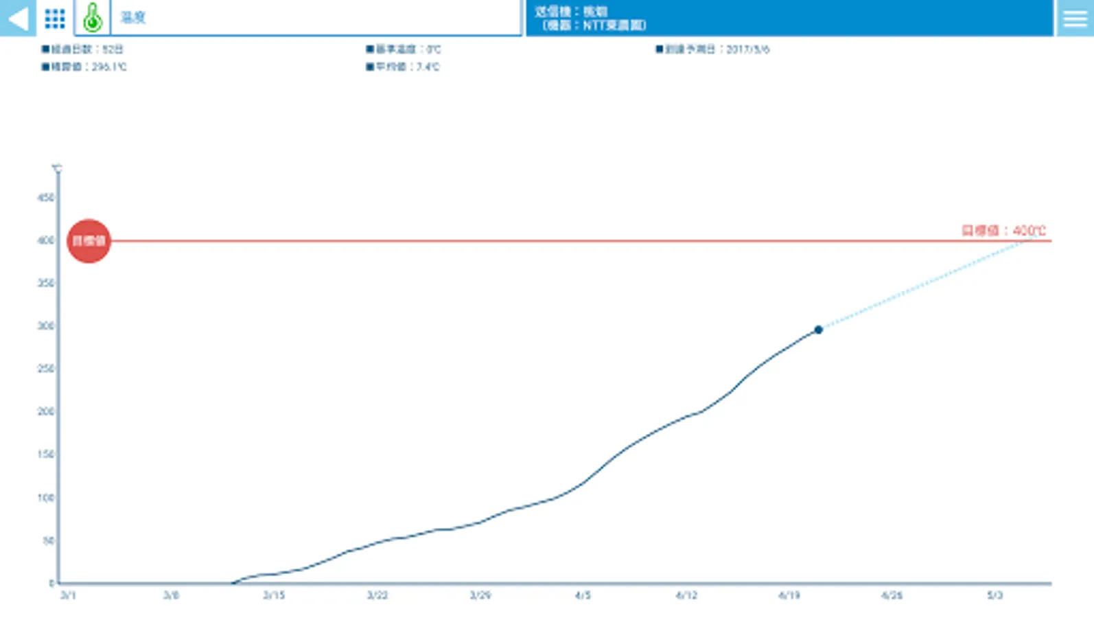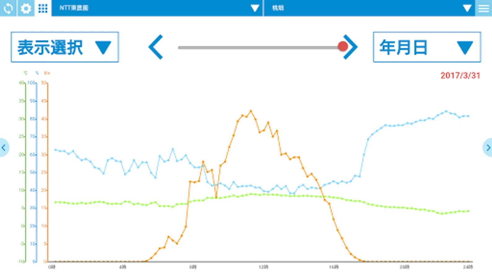 This application, collected weather data (temperature, humidity, illumination, etc.) to obtain from the cloud service (FLET'S entrusts Ru ~), numerical value, will be displayed in such graph.