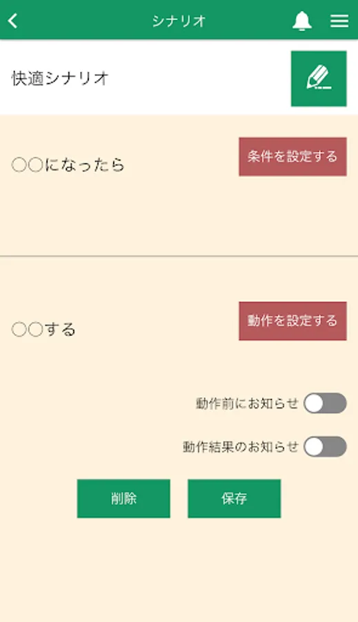 また、シナリオ機能を活用することで、宅内環境(温度や照度等)の変化に応じて、家電等を自動制御することも可能です。