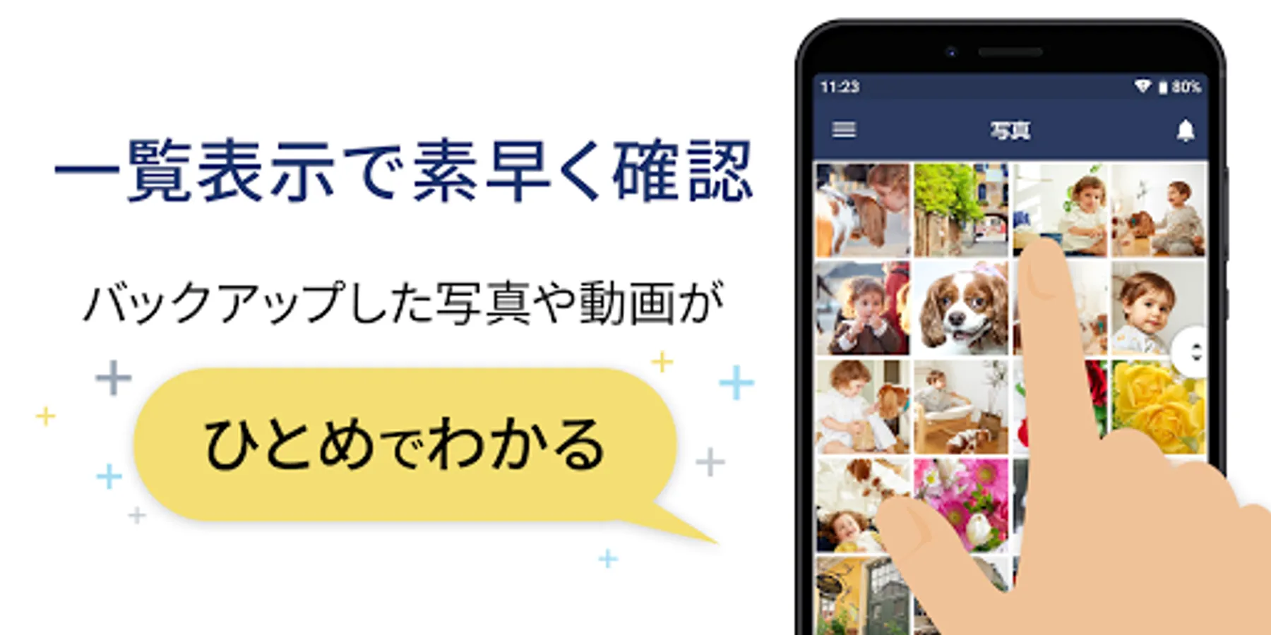 - With a simple design, you can check the files being backed up with thumbnail images, making it easier to understand the backup status such as the backup date and number.