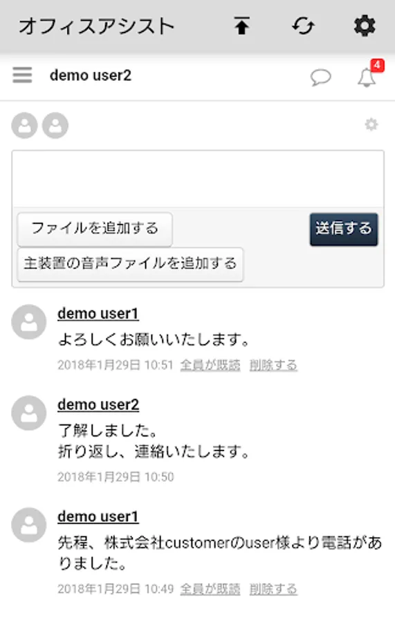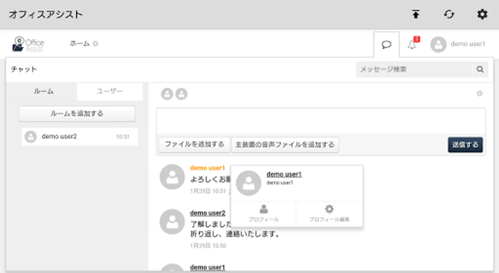 ・Users can have conversations (chat) by inputting characters and attaching files and images.