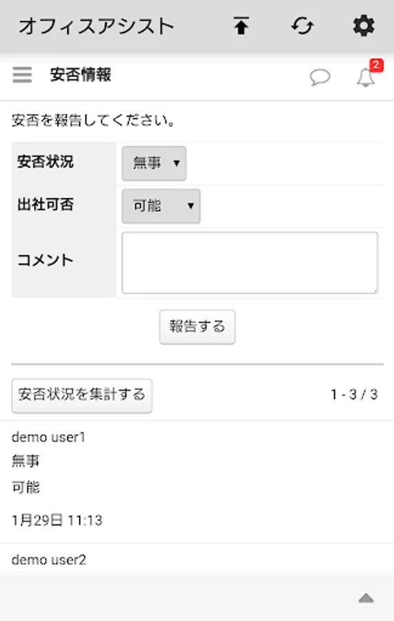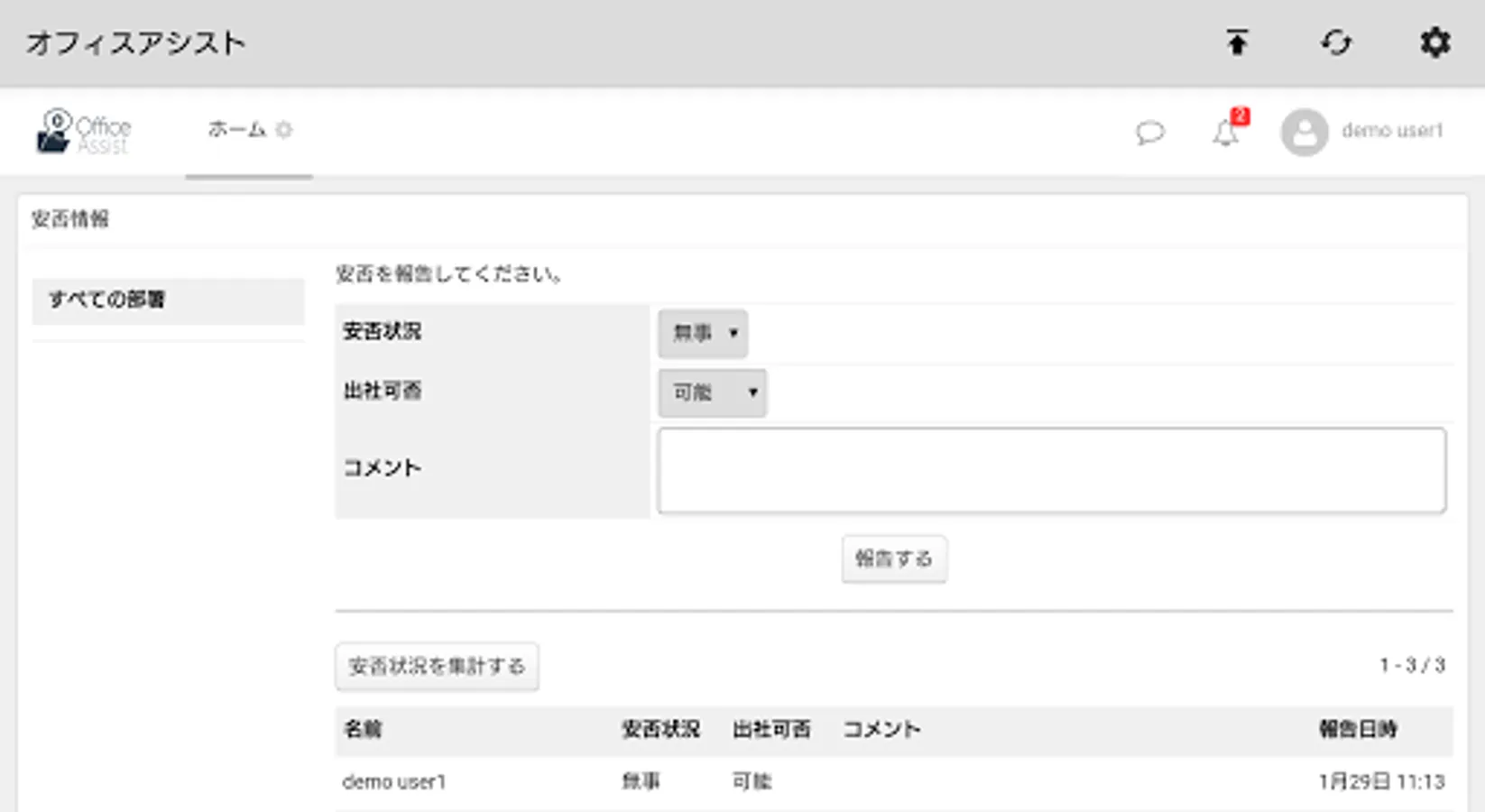 ・Broadcast notifications such as earthquake early warnings can be sent to all users, and safety confirmation and safety status can be aggregated.