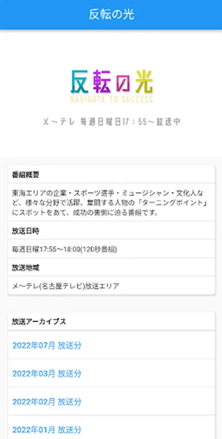 [Reversal Light] is a program provided by Top Co., Ltd., which is broadcast every Sunday from 17:55 to 18:00 on Me-Tele (Nagoya TV).