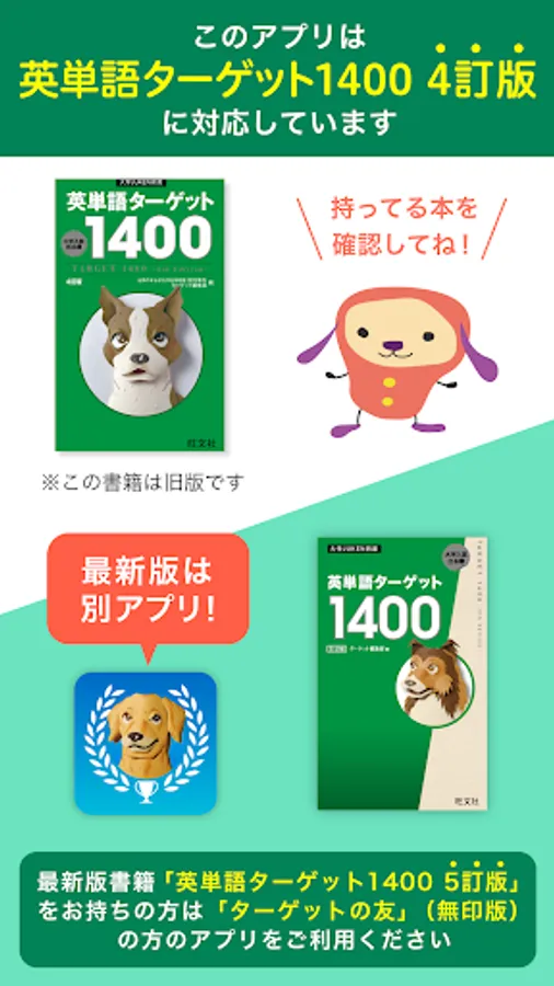 ■ “Target Friend for 1400” is a free app designed to support learning of “English Word Target 1400 4 Revision” (Obunsha Publishing) (some functions have in-app purchases).