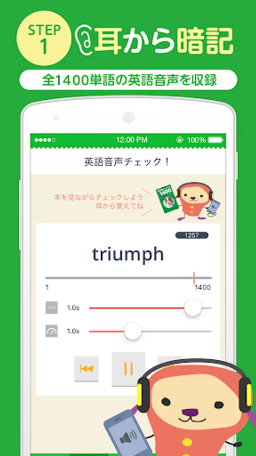 -You can set the most suitable playback method while adjusting the playback speed and the playback interval for each word.