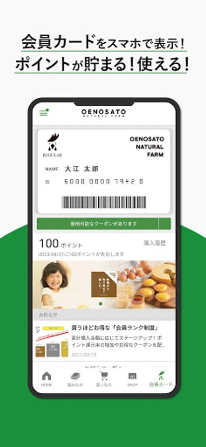 Easily display your membership card! Points can be used at all Oenosato Nature Farm online stores and Oenosato Resort stores!