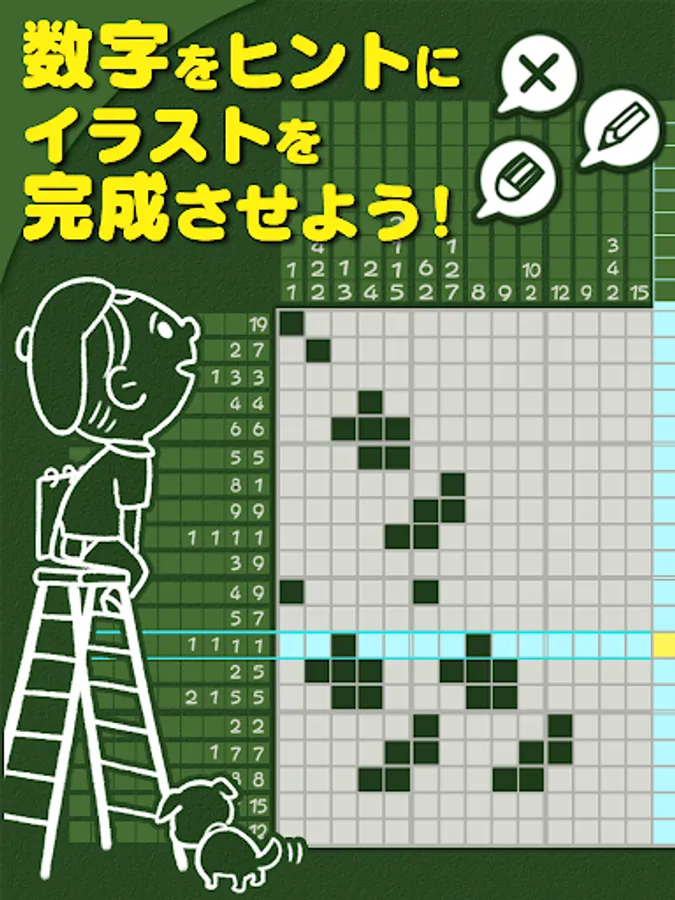 塗りつぶし、バツ印、消しゴム すべて連続入力可能!