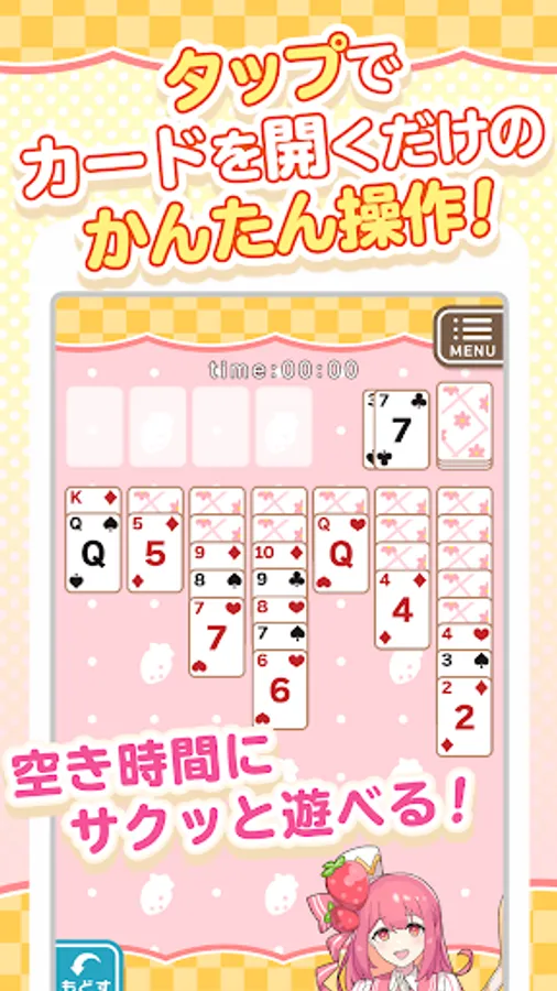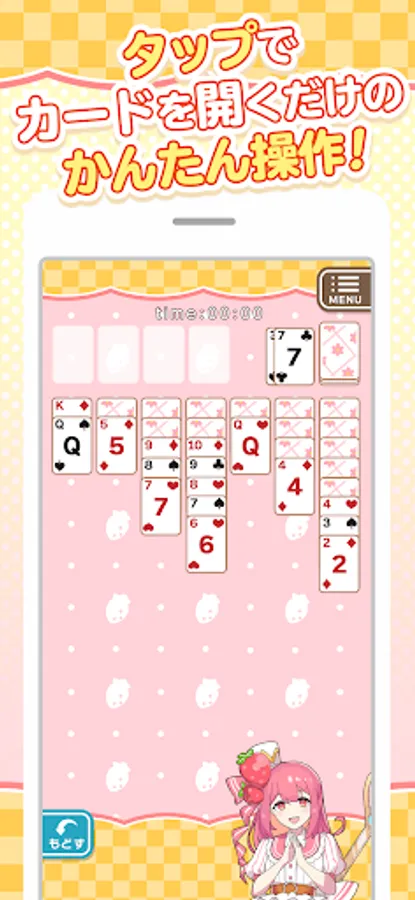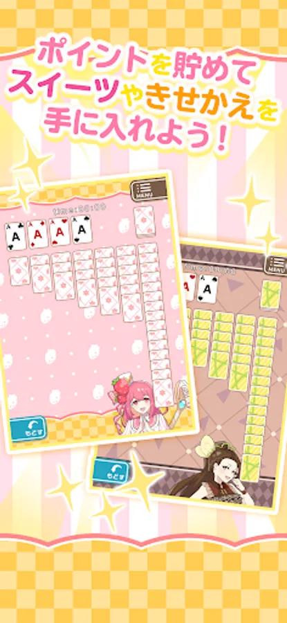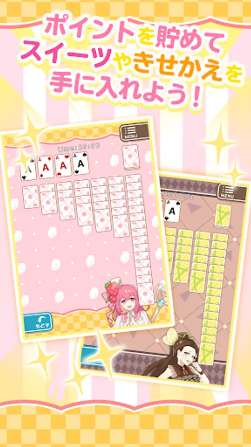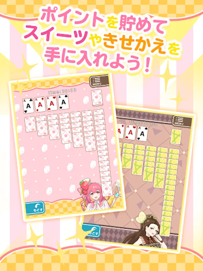 If you clear the solitaire and accumulate points, you can get sweets, wallpaper, and other dress-up items. You can also get points by tapping the character.