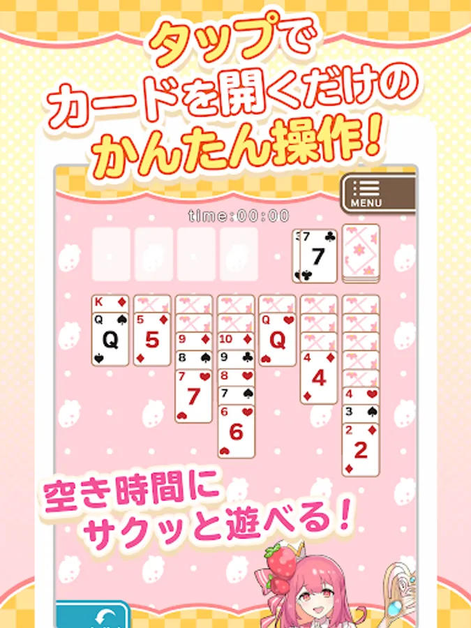 Pretty girl card solitaire appeared. Get points by tapping a beautiful girl!