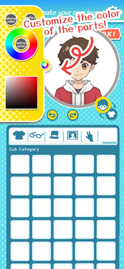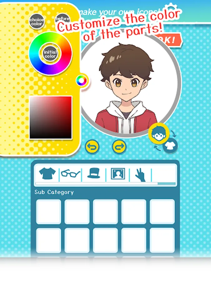 You can change the color of the clothes, hair, eyes, and mouth as you like!