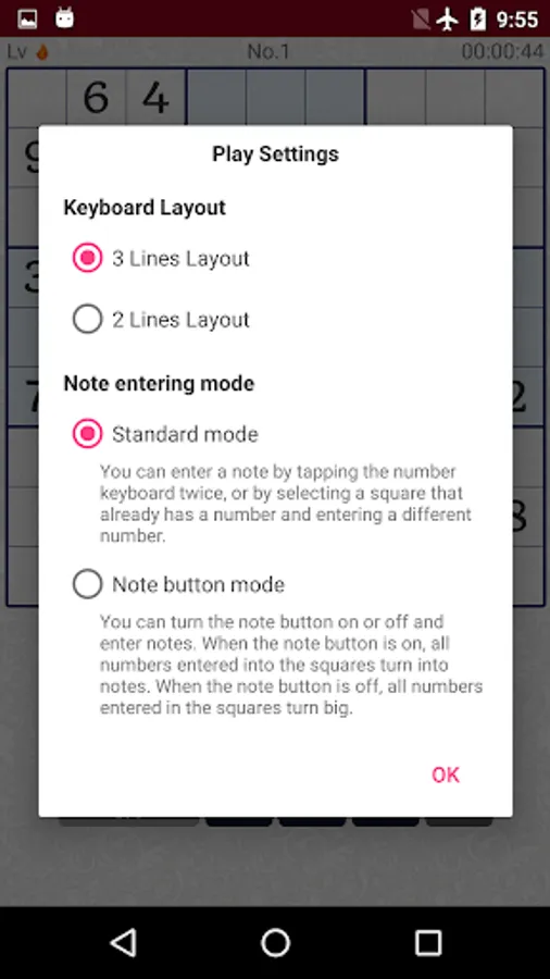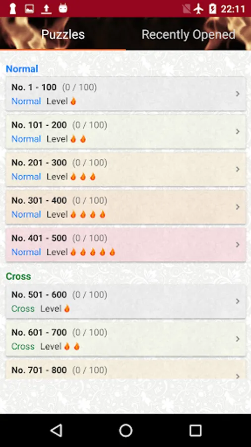 There are five categories to choose from—Normal, Cross, Jigsaw, Cross Jigsaw and Inequality—each with 500 puzzles each, for a total of 2500 puzzles!