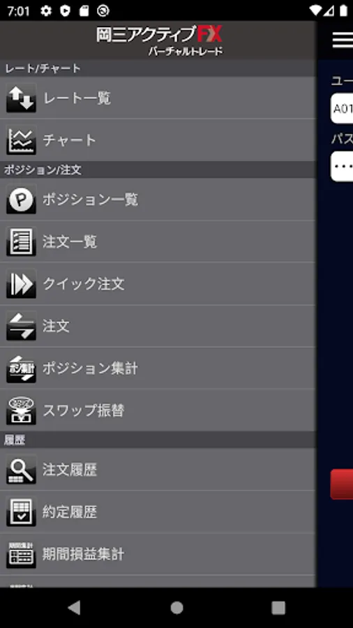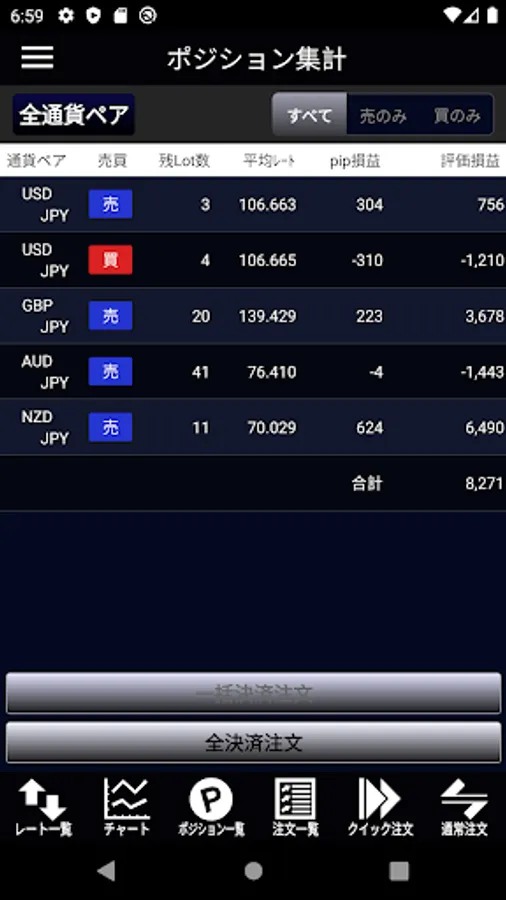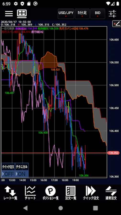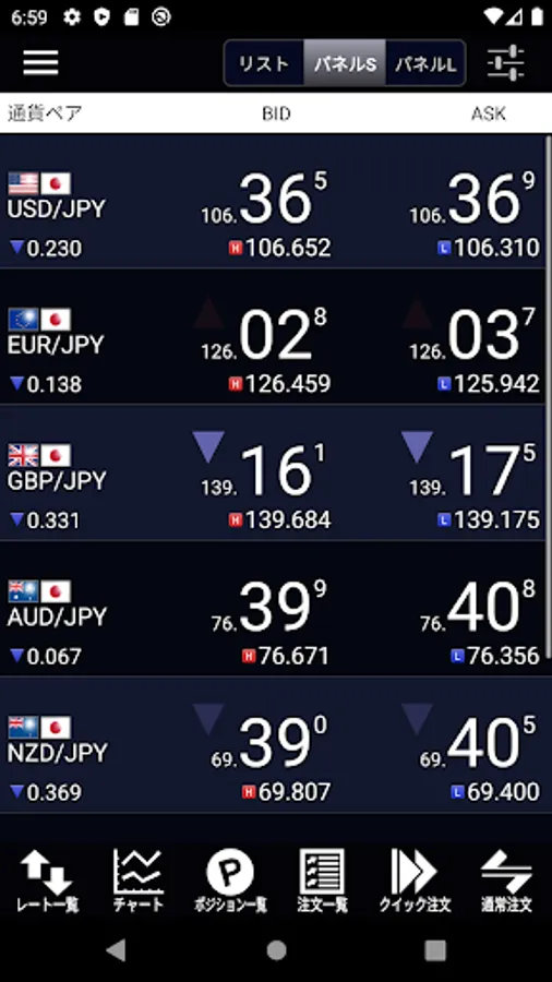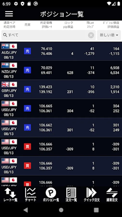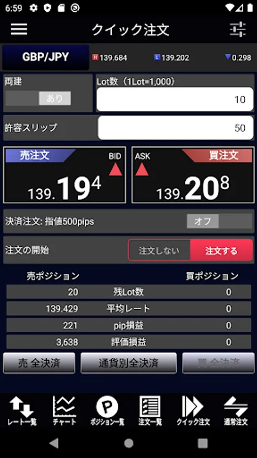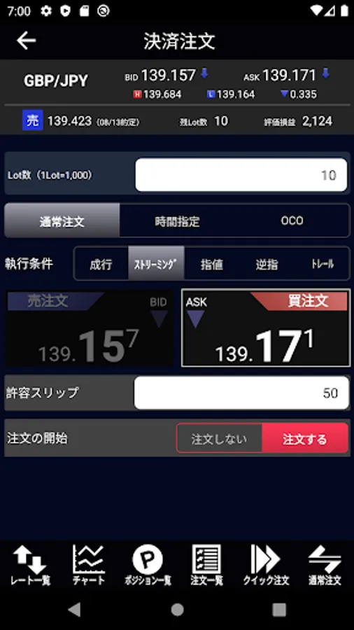 In addition, you can quickly move to "Chart", "Quick Order", "All Settlement Order", etc. with a single tap on the rate list.