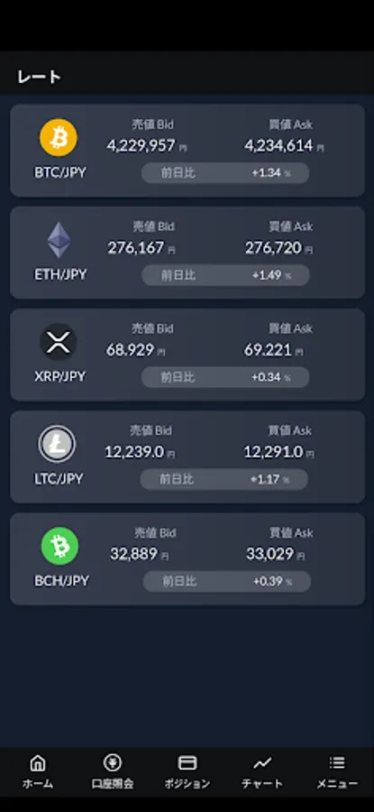 Investment targets are major crypto assets. Deliver real-time rates of 5 brands handled.
