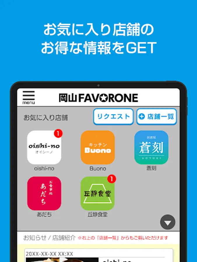 If you register the shop you care about as a favorite, you can get various information about that shop!