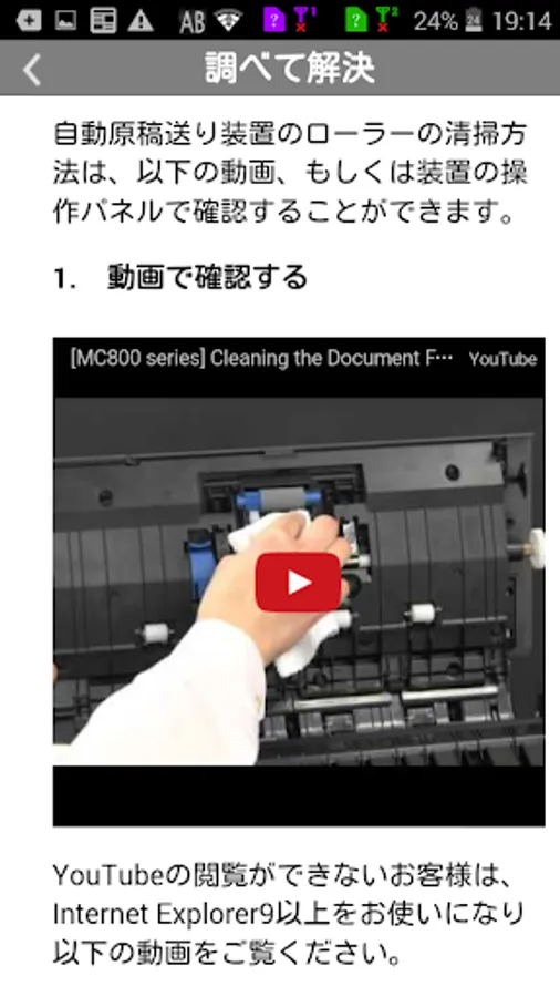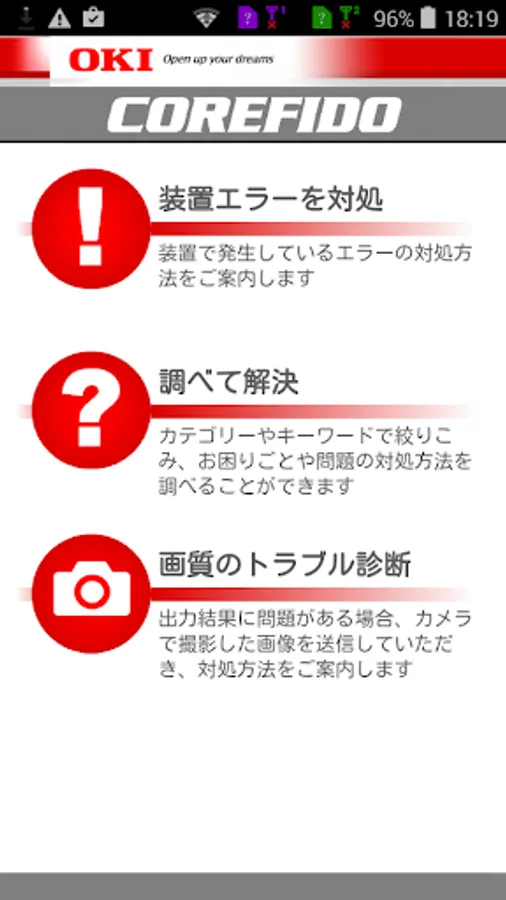 The status of the device is automatically searched in the cloud, and the status of the error or warning that has occurred and the solution are displayed on the smartphone. You can solve the problem while looking at your smartphone in front of the device.