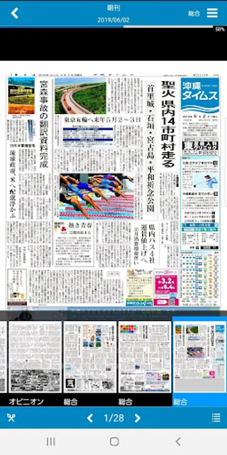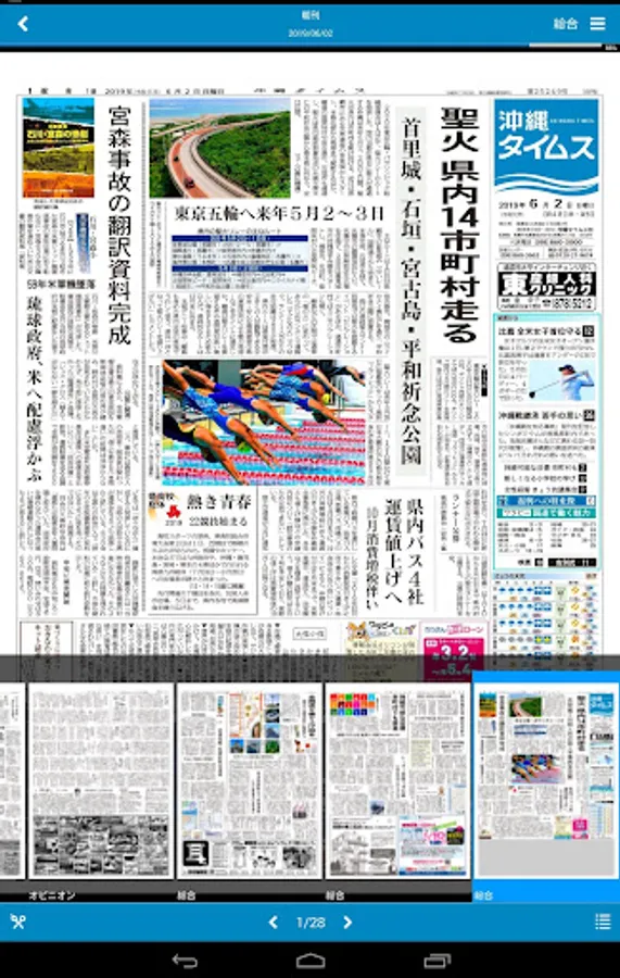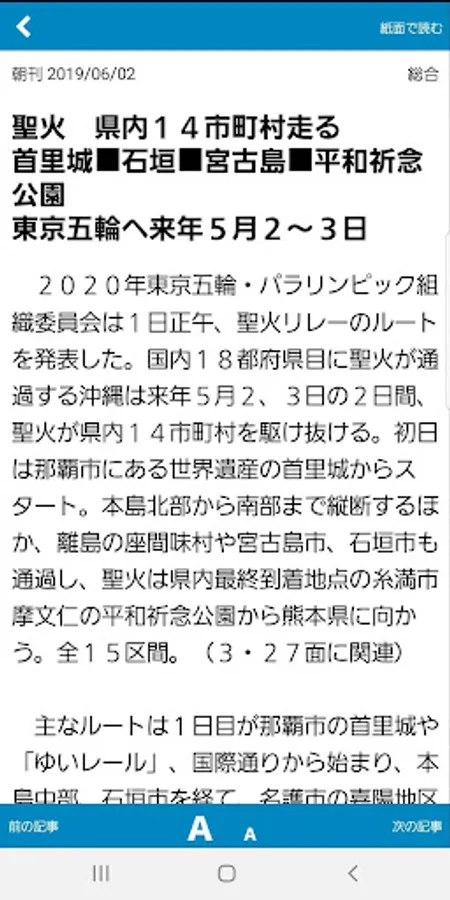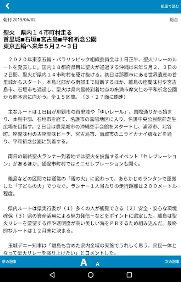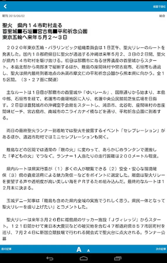 The Okinawa Times paper is an official app that can be seen on android. It is delivered every morning and there is no time difference.