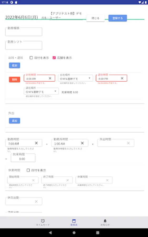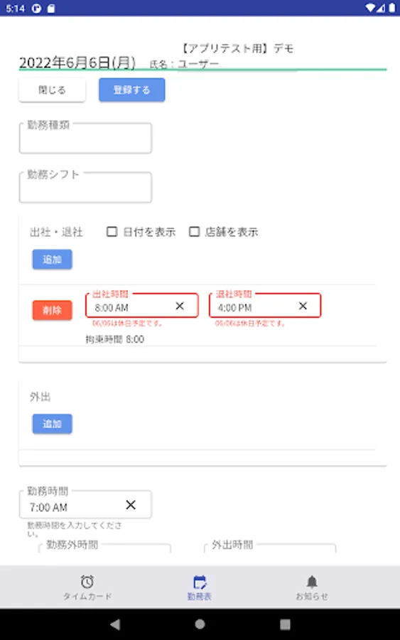 The main functions are to stamp daily attendance and departure and to display the roster. In addition, application work using workflows such as overtime and paid holidays is also possible.