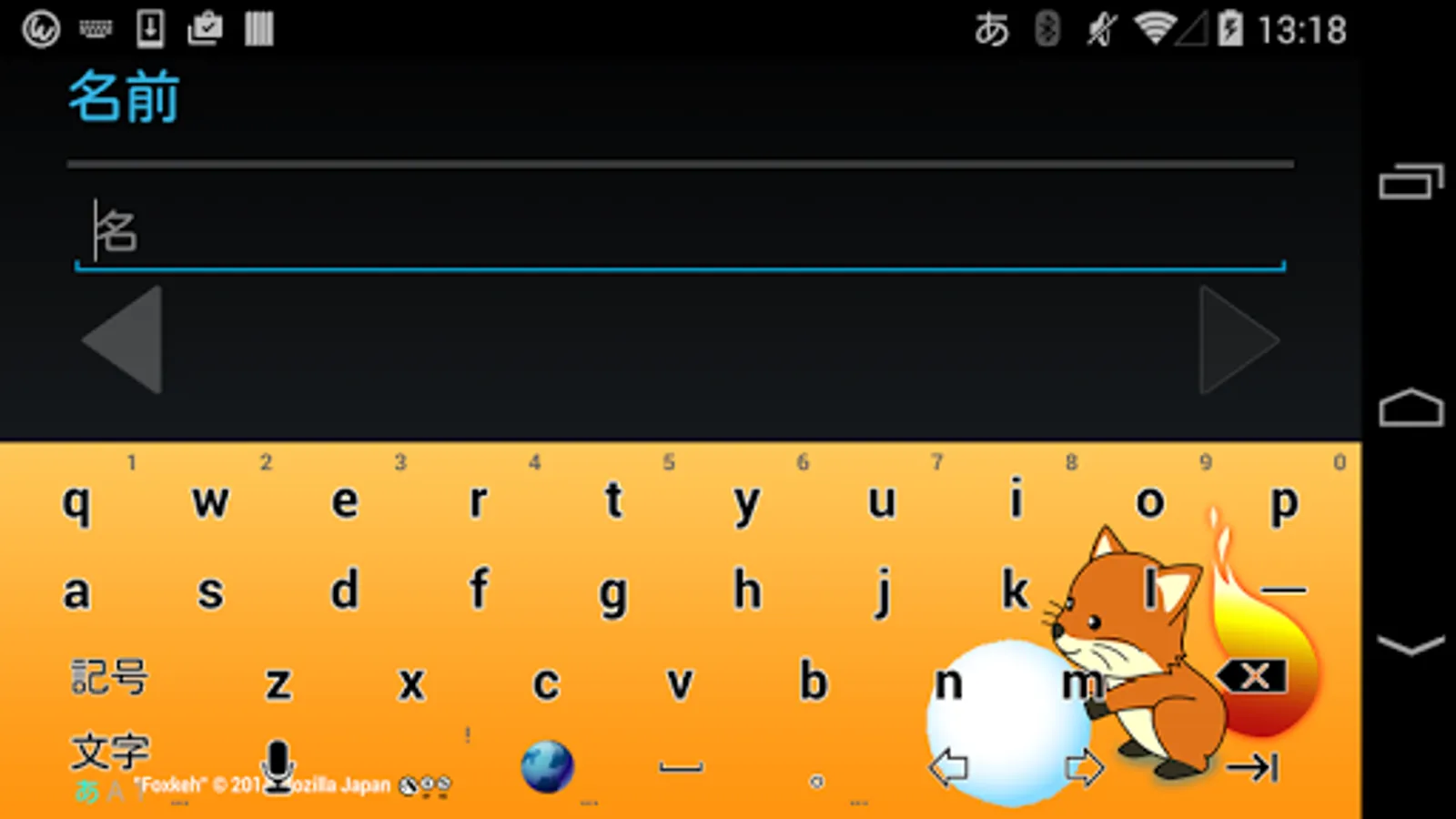Foxkeh (winter) keyboard image is a keyboard image for Wnn Keyboard Lab.