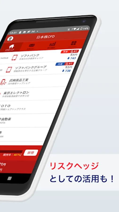 In CFD trading, the CFD trading price fluctuates due to fluctuations in stocks and index futures subject to derivatives, so there is a risk of loss due to fluctuations in the opposite direction to the customer's expectations, and the investment principal is guaranteed. not. Also, the amount of loss may exceed the amount of margin. The minimum margin required for CFD trading is 10% of the open interest amount for the stock index CFD and 20% of the open interest amount for the stock CFD.