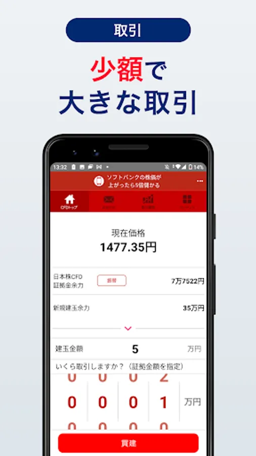 With "PayPay Securities Japanese Equity CFD", you can specify from a margin of 10,000 yen.